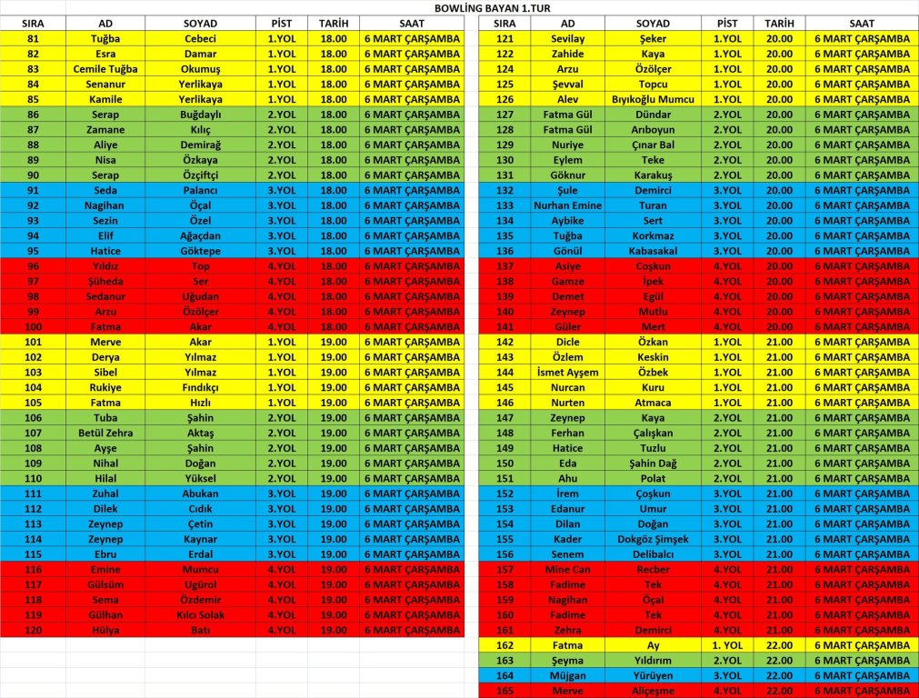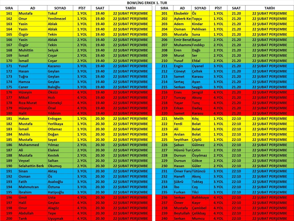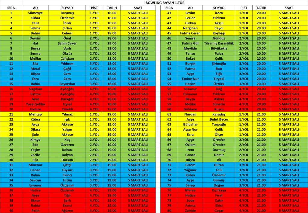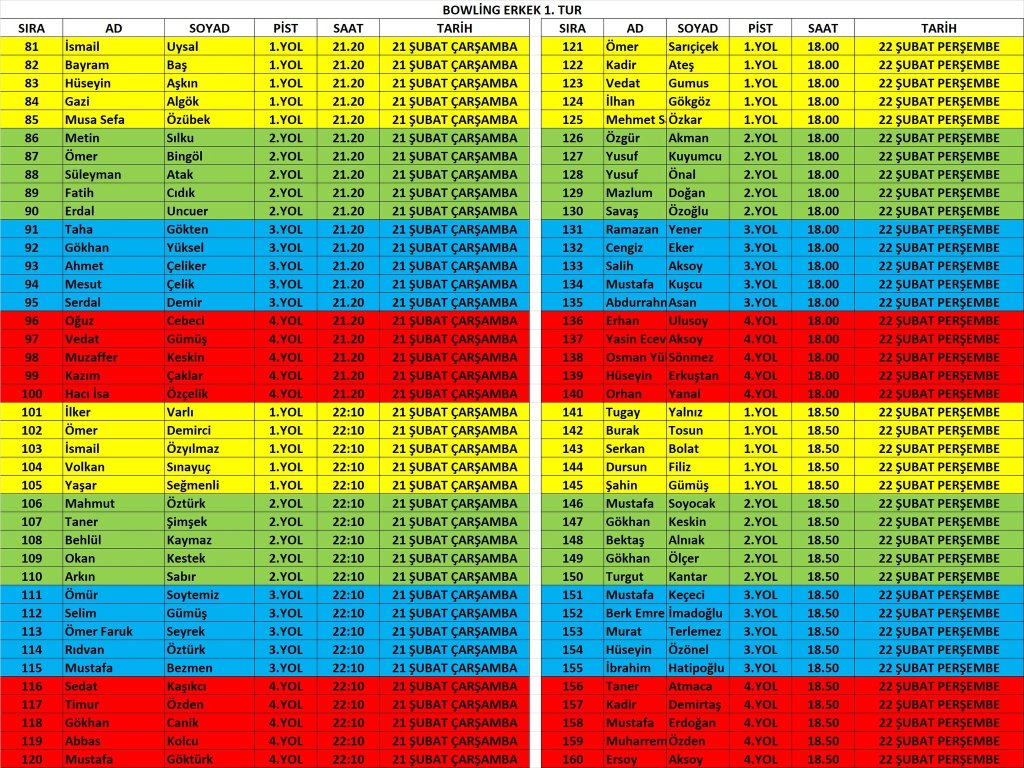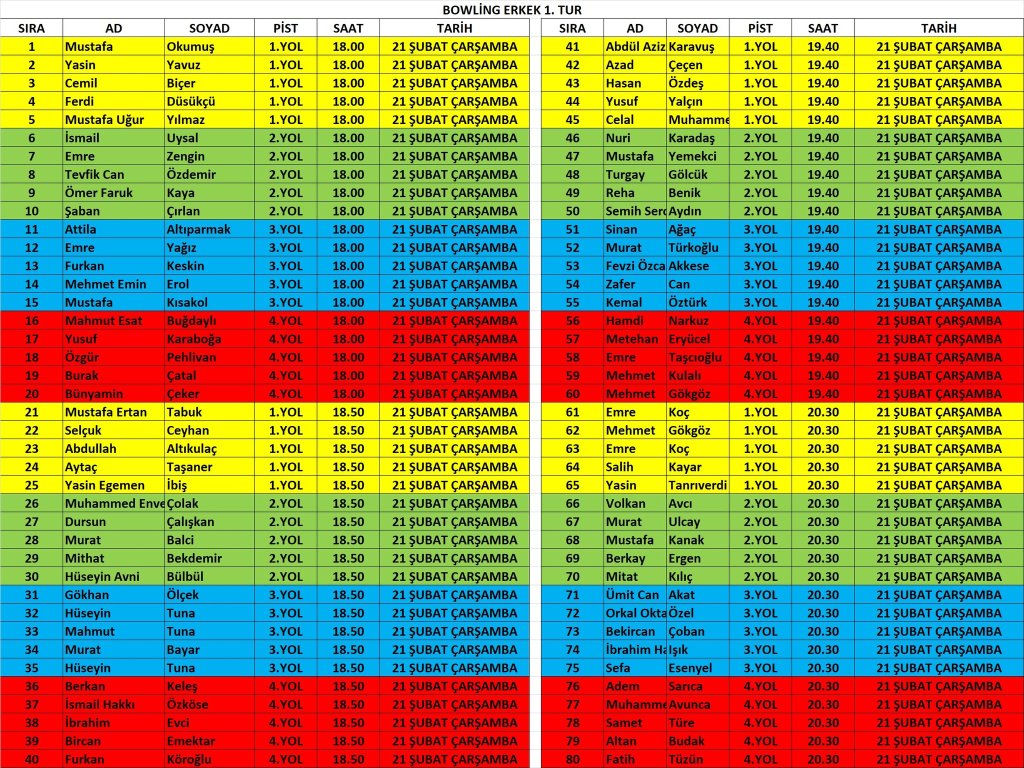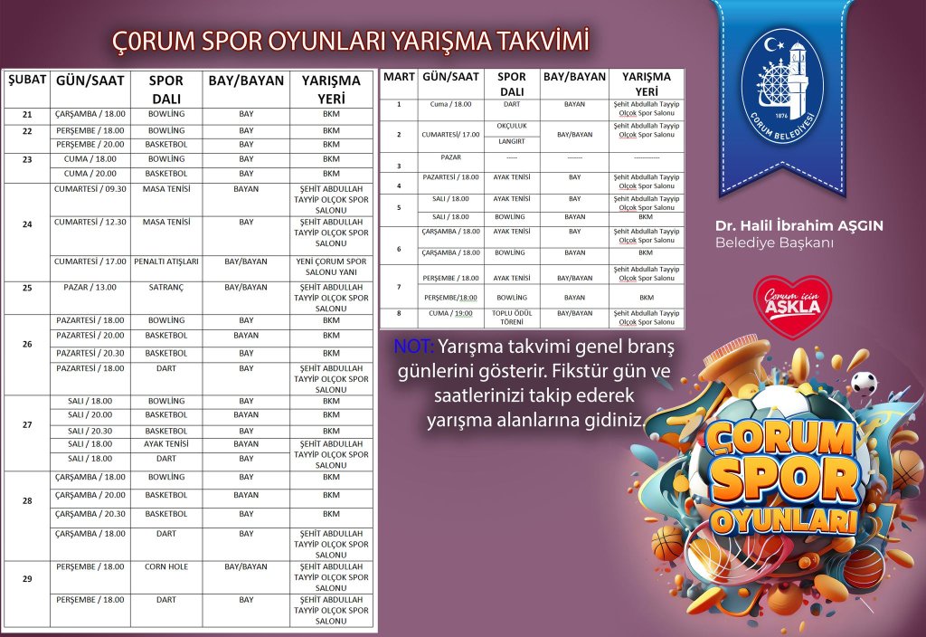 NOT: Takvimde belirtilen günler genel branş günleridir. İsim yazılı fikstürleri takip ederek yarışma alanlarına gitmenizi rica ediyoruz.