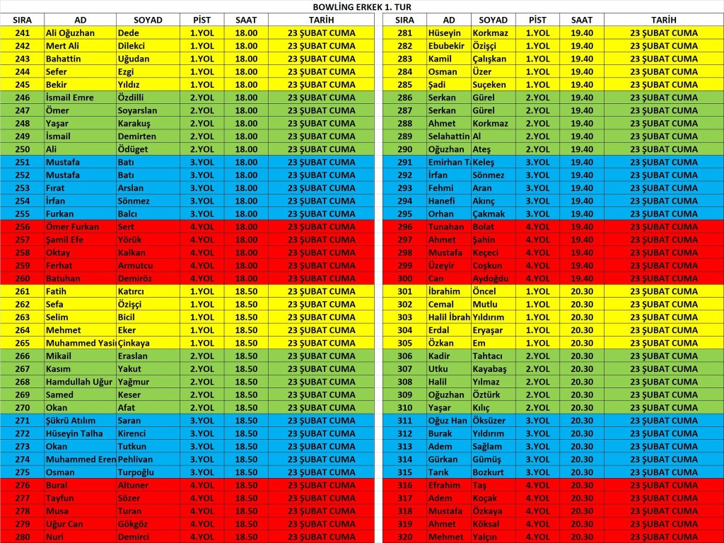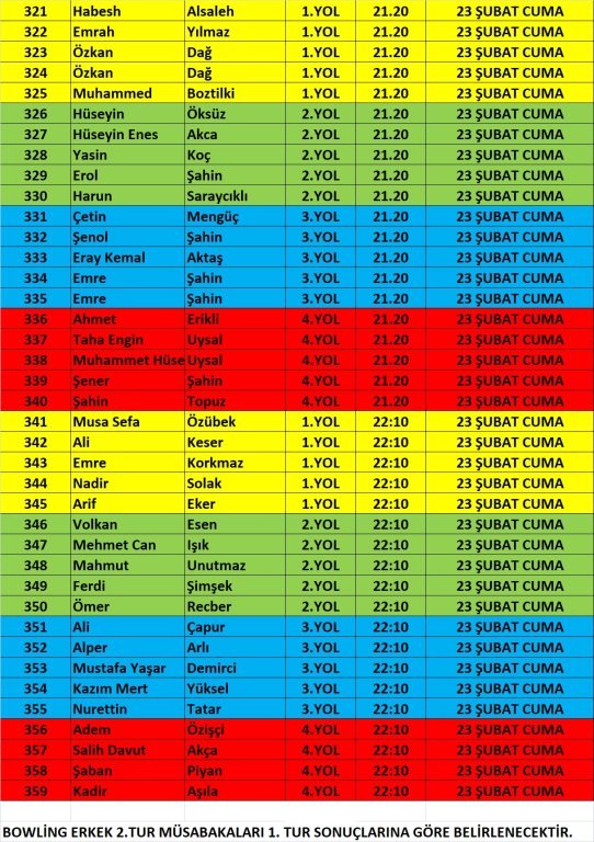 Diğer branş fikstürleri gün gün paylaşım yapılacaktır.