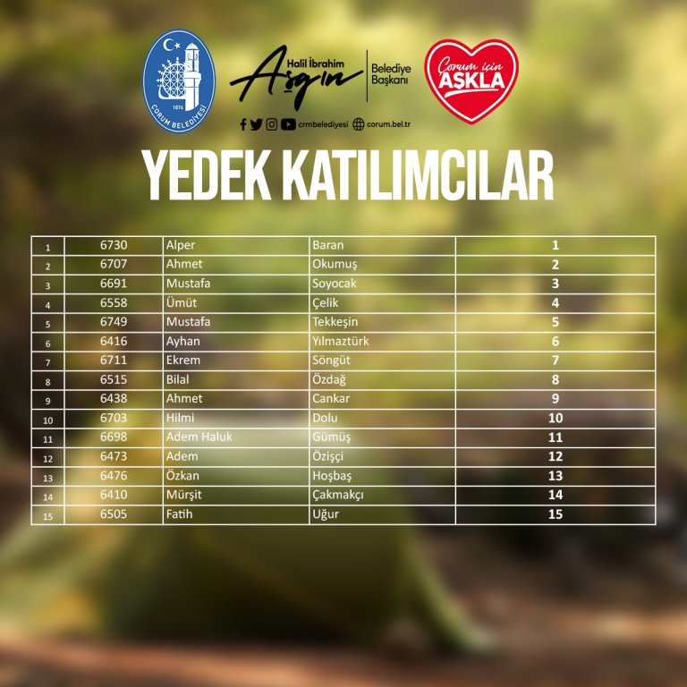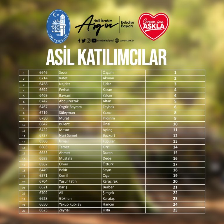 2022 - 2025 © Çorum Belediyesi Bilgi İşlem Müdürlüğü tarafından ❤️ ile tasarlanmıştır.