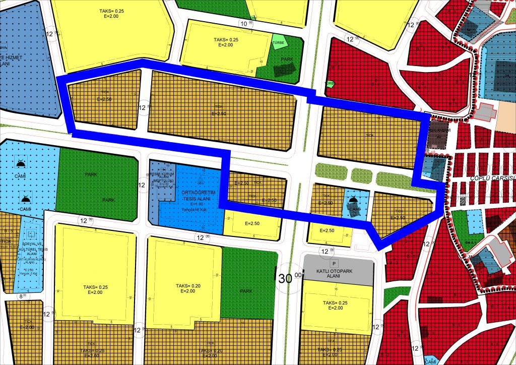Çorum Farabi Caddesine cepheli parsellere plan notlarına 'Asma kat yapılamaz' eklenmesi şeklindeki plan değişikliği