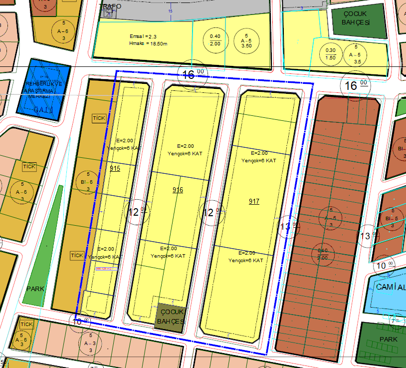 kısmı), 916 ve 917 nolu yapı adalarına yönelik olarak A grubu plan müellifi