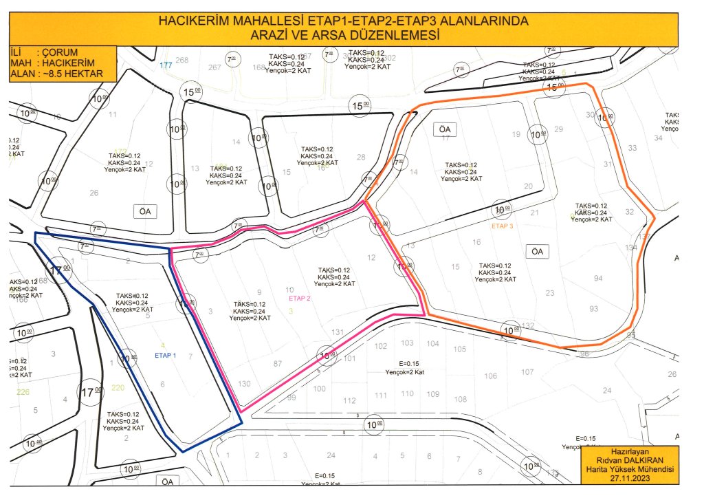 Arazi ve Arsa Düzenlemesi evrakları 27.11.2023 tarihinden itibaren  bir ay süre ile Çorum Belediyesi  İmar ve Şehircilik Müdürlüğü 3. Kat ilan panosunda  askı ilanına çıkartılmıştır.