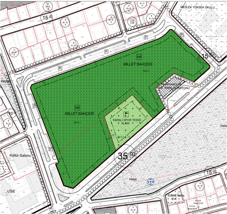 kararı getirilmiştir. Millet Bahçesi 44.100 m² büyüklüğündedir. Mevcut Kapalı