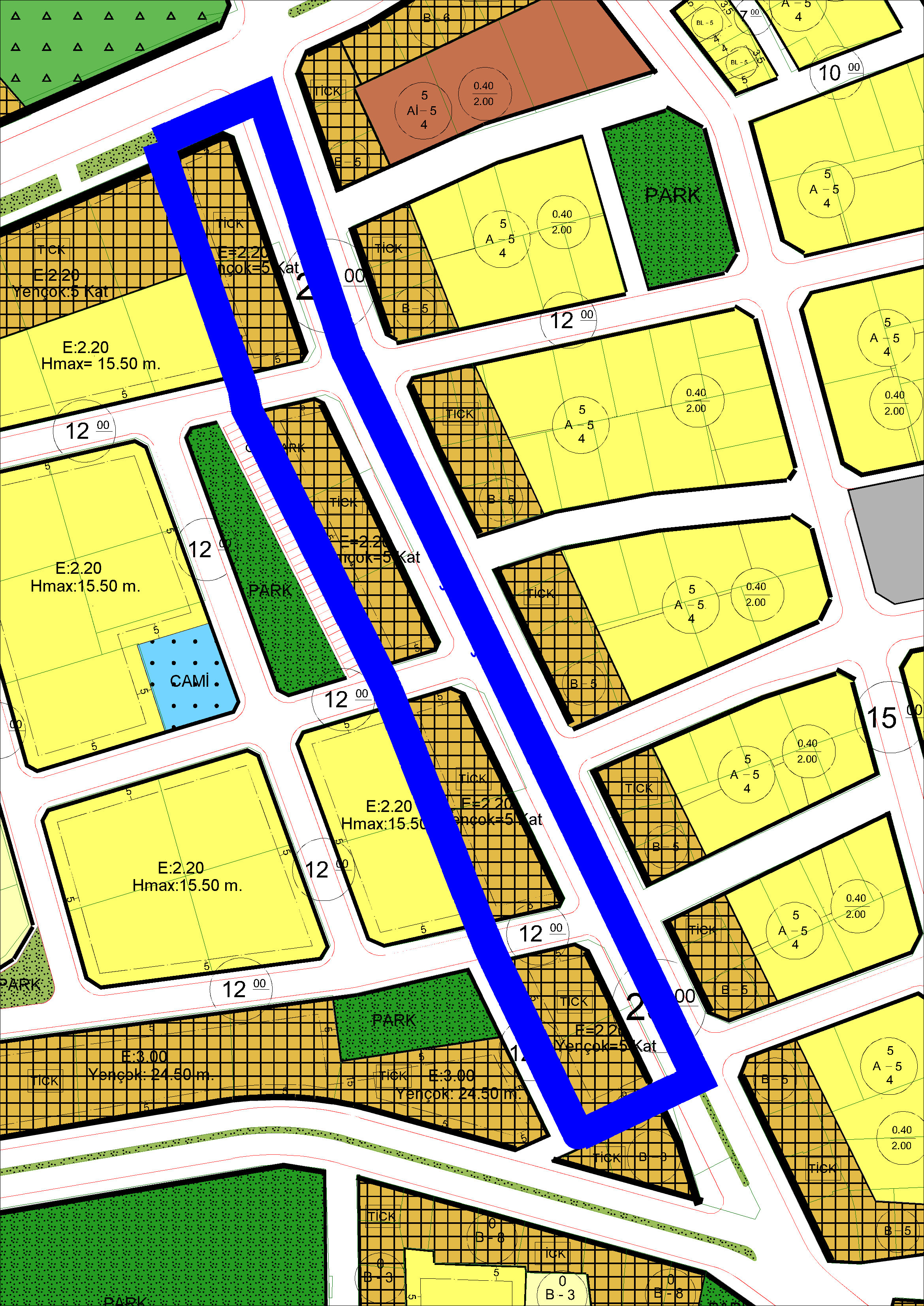 Çorum Karaman Çavuş Caddesine cepheli parsellerde  plan notlarına Asma Kat Yapılamaz şeklindeki plan değişikliği
