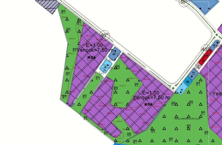 koşulları E=1.00 ve Yençok =7.50 m olmak üzere KSS Alanı (Küçük sanayi alanı)