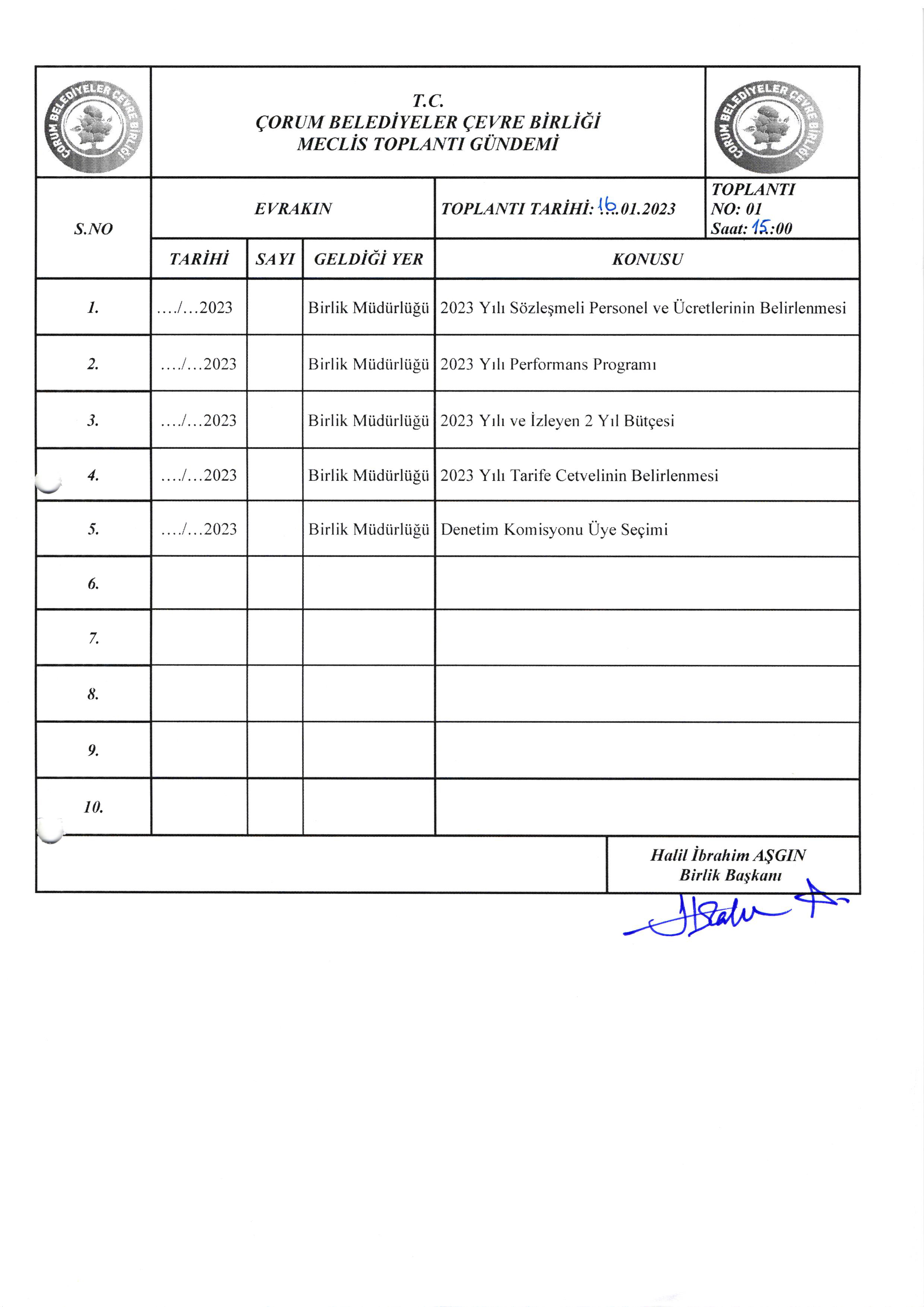 Çevre Birliği Meclisi Ocak Toplantısı