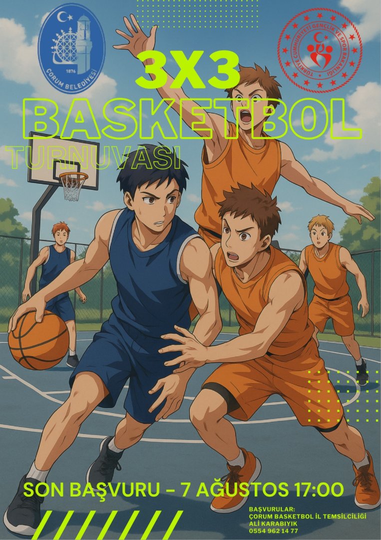 Takımını kur, yeteneğini göster, sokağın ruhunu sahaya yansıt! Çorum Belediyesi ve Gençlik ve Spor İl Müdürlüğü olarak düzenlediğimiz heyecan dolu 3x3 Basketbol Turnuvası'na tüm basketbol severleri bekliyoruz!