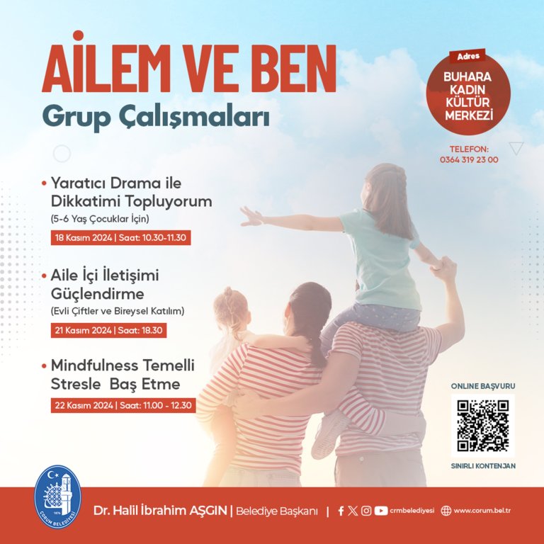 İLETİŞİM: BUHARA KADIN KÜLTÜR MERKEZİ  0364 319 23 00  Online Başvuru Linki   https://crm.corum.bel.tr/WebBasvuru/aile-ve-ben#/