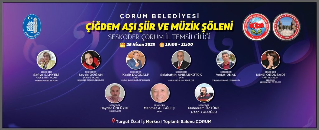 Belediyemiz ve SESKODER Çorum İl Temsilciliği'nin ortaklaşa yapmış olduğu Çiğdem Aşı Şiir ve Müzik Şölenine,
