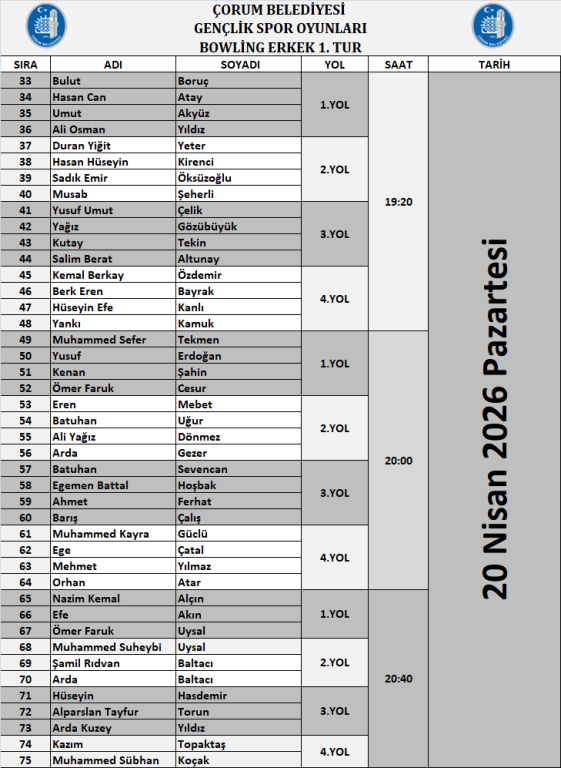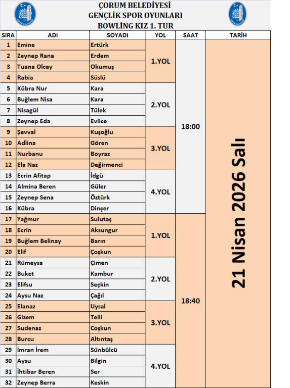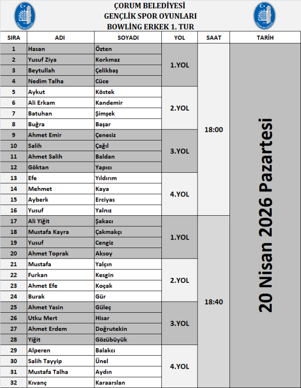 Organizasyonumuz, Bowling branşı ile 20 Nisan 2026 tarihinde başlayacaktır.
