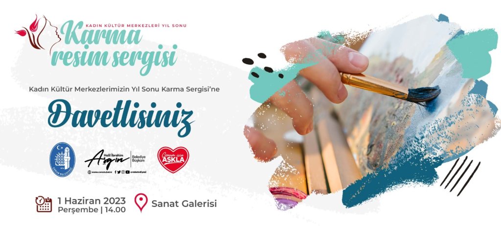Kadın Kültür Merkezimizin Yıl Sonu Karma Sergisine Tüm halkımız davetlidir.  Saat: 14:00  Yer:  Çorum Belediyesi Sanat Galerisi.