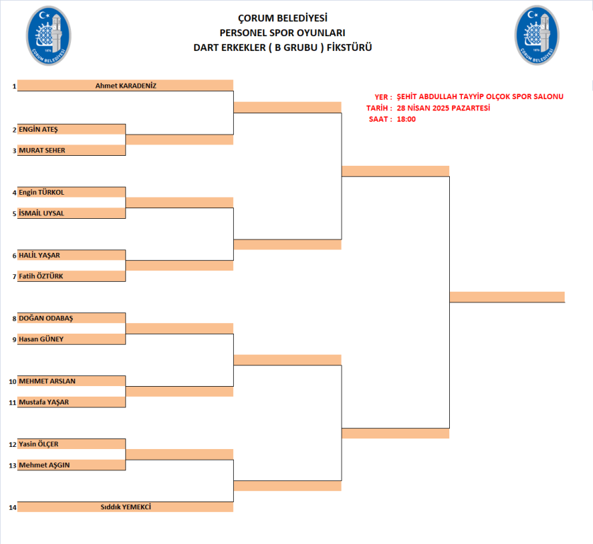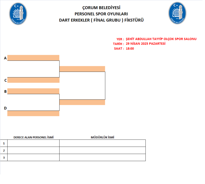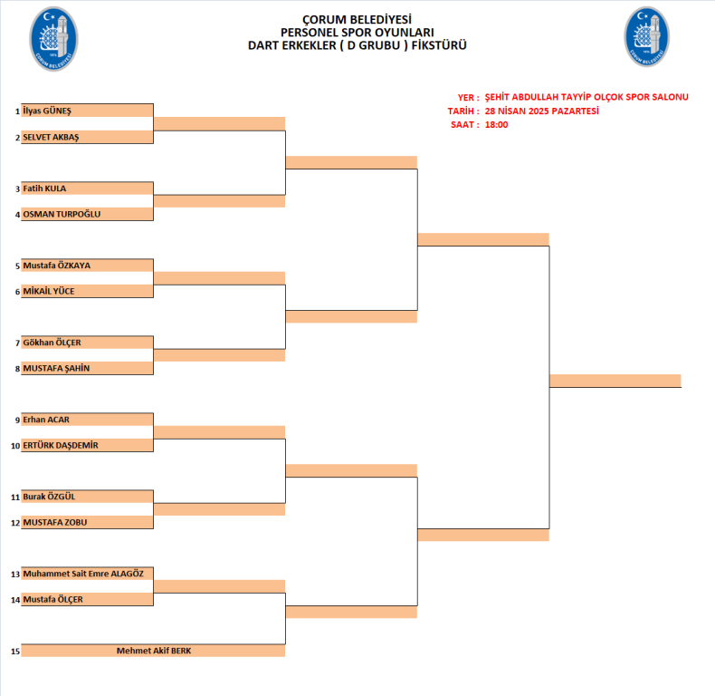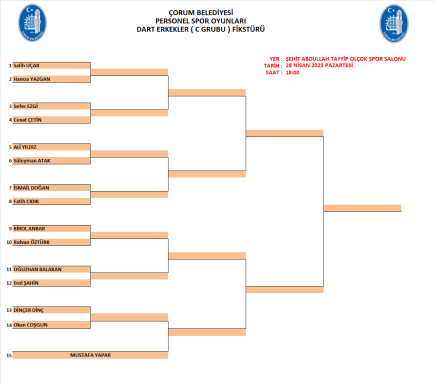 DART             :  28 - 29 Nisan 2025 tarihi saat 18:00 Şehit Abdullah Tayyip OLÇOK Spor Salonunda