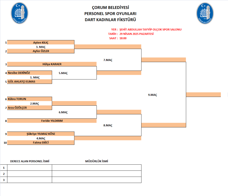 TÜM PERSONELLERİMİZ ÇORUM BELEDİYESİ PERSONEL SPOR OYUNLARINDA BAŞARILAR DİLERİZ.