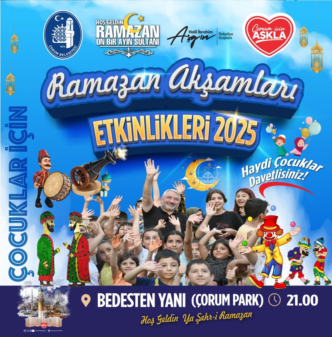 Ramazan Akşamları Etkinlikleri programı kapsamında çocuklar için karagöz, hacivat, meddah, palyaço,  ortaoyunu ve sürpriz ikramların yer aldığı eğlencemize tüm çocuklarımız davetlidir.