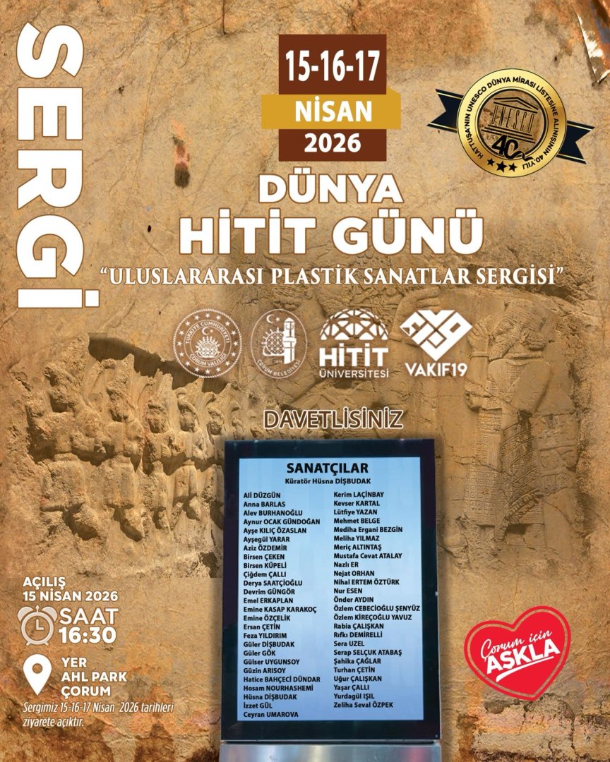 Hattuşa'nın UNESCO Dünya Mirası Listesine Alınışının 40. Yılı Etkinlikleri kapsamında düzenlenecek "Uluslararası Plastik Sanatlar Sergisi"ne tüm halkımız davetlidir.