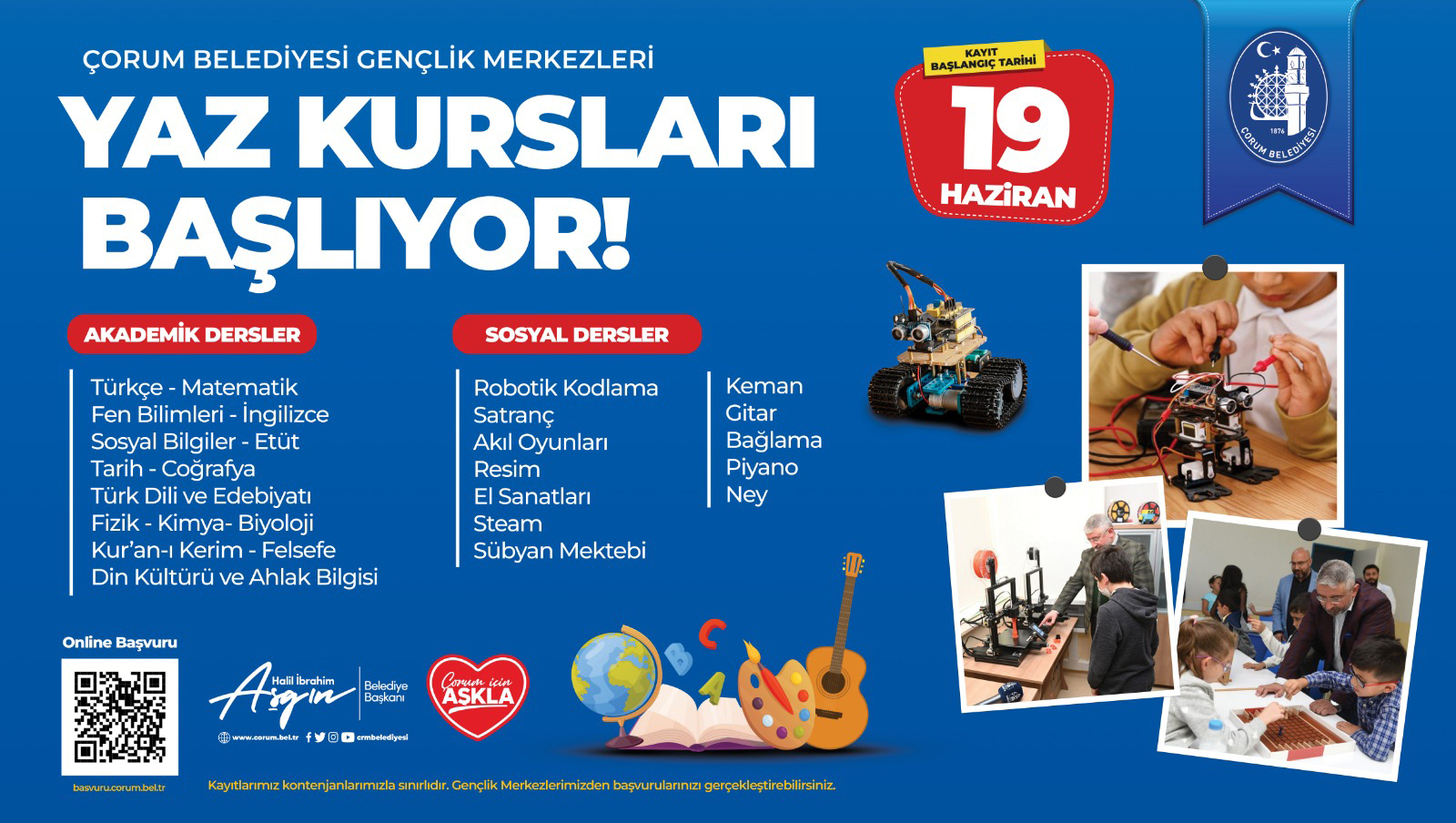 Gençlik Merkezlerimizin her yıl geleneksel olarak düzenlediği yaz kurslarına başvurular, 19 Haziran Pazartesi günü başlıyor.