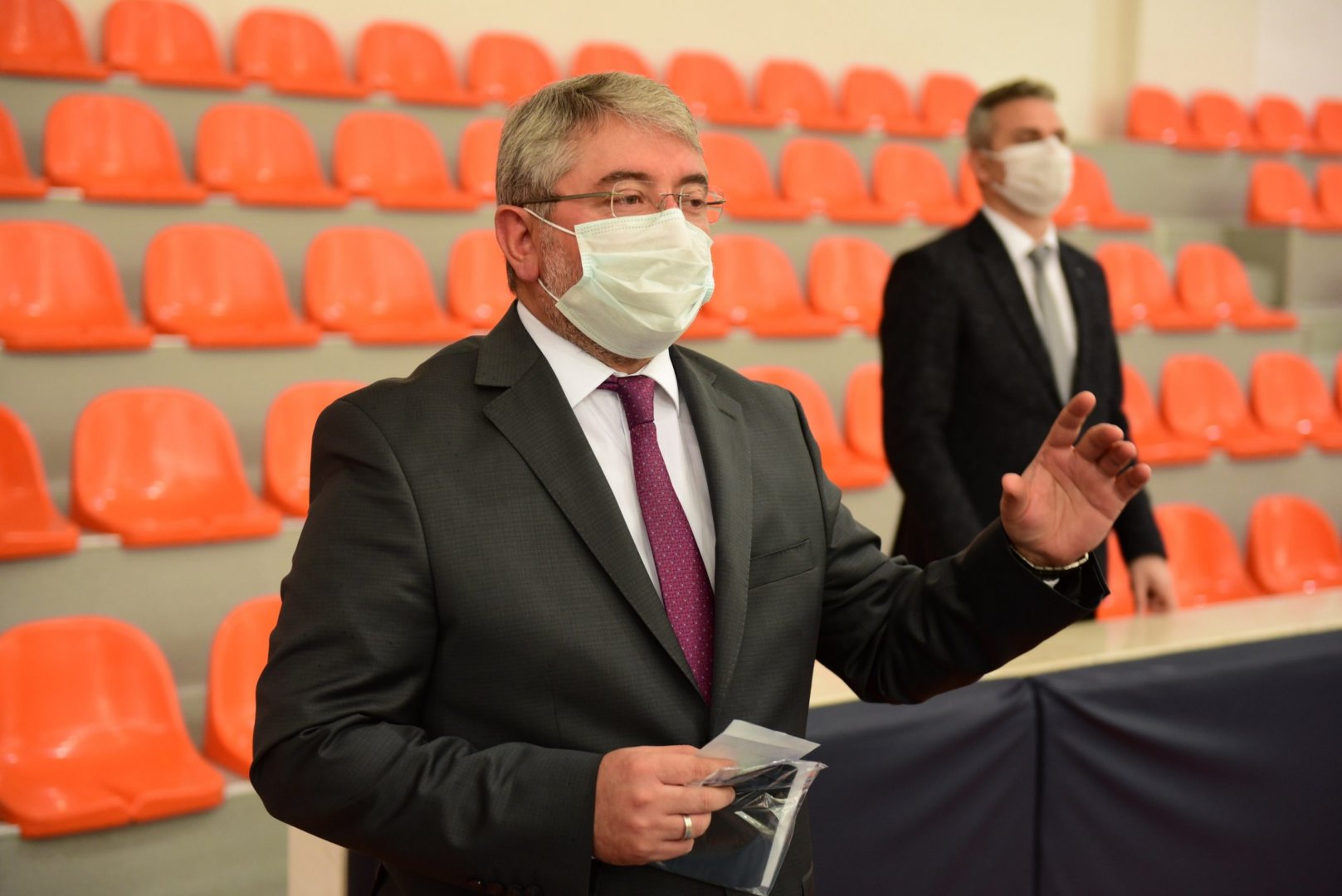 Maske dağıtımı yapacak personele yönelik bir konuşma yapan Belediye Başkanımız Dr. Halil İbrahim Aşgın, “Gittiğiniz evlerde Sayın Cumhurbaşkanımızın selamını iletin. Koronavirüsle mücadele kapsamında verilen destansı mücadelenin en başında Sayın Cumhurbaşkanımız var, bakanlarımız var. Tüm dünyayı etkisi altına alan koronavirüsle ilk andan itibaren yoğun bir şekilde mücadele etmeye başlamıştık. Başladığımız günden bu yana çok sayıda çalışmaya imza attık. Şimdi de Belediyemiz çalışanları tarafından paketlenen bu özel maskeleri çarşamba gününe kadar tüm evlere ulaştıracağız.” dedi.