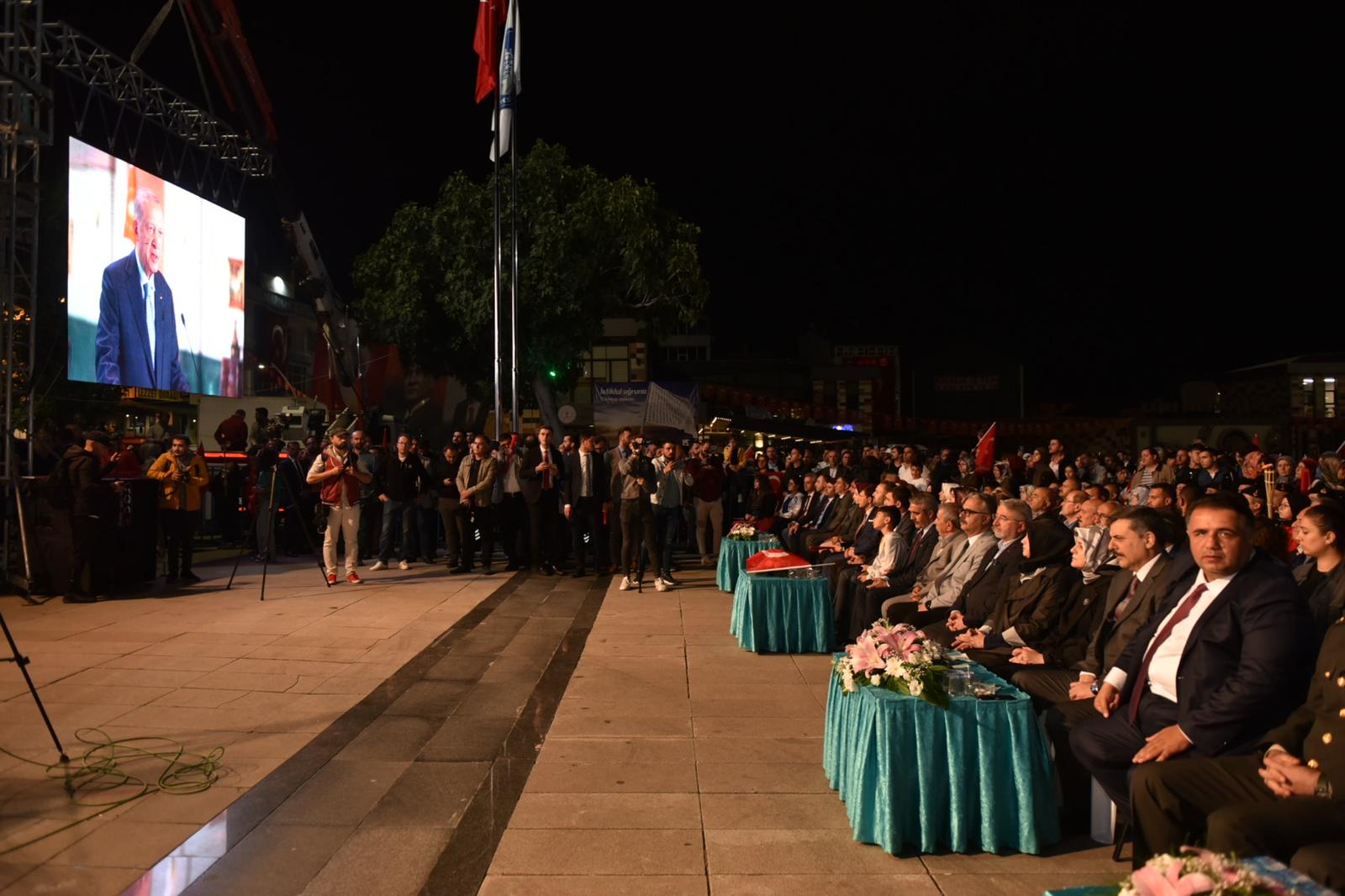 Belediye Başkanımız Dr. Halil İbrahim Aşgın da, Türk milletinin kökü atide gözü ileride olan yeni hedeflere 2053’lere 2071’lere yürüyen büyük bir millet olduğunun altını çizerek, “Bu millete asla diz çöktüremezsiniz. Bu millete asla boyun eğdiremezsiniz. Bu millet nasıl ki Malazgirt’te şahlanmışsa Çanakkale’de yedi düvele tokat vurmuşsa 15 Temmuz’da ağa babalarının tamamına tokat vurmuşsa Allah’ın izniyle Cumhurbaşkanımız Recep Tayyip Erdoğan’ın liderliğinde Cumhur ittifakıyla beraber bu milletin yürüyüşüne hiç kimse zarar veremeyecektir” dedi.