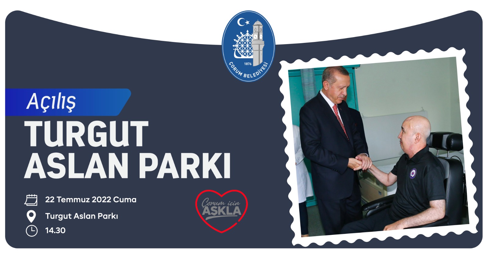 Başkan Aşgın, şehrimizin güzide parkalarından biri olan Turgut Aslan Parkının açılışına tüm Çorum halkını davet etti.