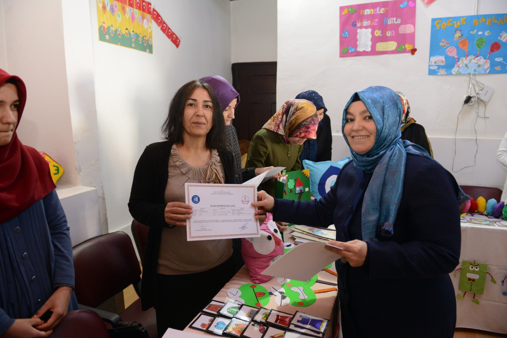 Kadın Kültür ve Sanat Merkezlerinin, kadınlar için Çorum’da yapılmış en büyük hizmet olduğunu belirten Belediye Başkanı Zeki Gül’ün eşi Halime Gül,“Kurs sonucunda ortaya çıkan el emeği ürünleri ve kursiyerlerin kazanımlarını gördükçe bu kursların ne kadar anlamlı olduğunu bir kez daha görüyoruz. Bugün Okul Öncesi Çocuk Gelişimi ve Eğitimi kursunu tamamlayan 22 kursiyerimizin sertifikalarını verdik. Kurs sürecinde hanım kardeşlerimiz, çocuklar için faydalı olacak zihinsel ve fiziksel gelişimi destekleyecek ürünler ortaya çıkarttılar. Daha da önemlisi kursa gelen anne adayı arkadaşlar, anneler, babaanneler ve anneanneler var. Bunlar kendi çocuklarının ve torunlarının yetişmesinde üzerlerine düşeni bu kursta öğrendikleri bilgilerle en doğru şekilde yerine getirecekler” dedi ve bütün kursiyerleri emeklerinden ve gayretlerinden dolayı tebrik etti.