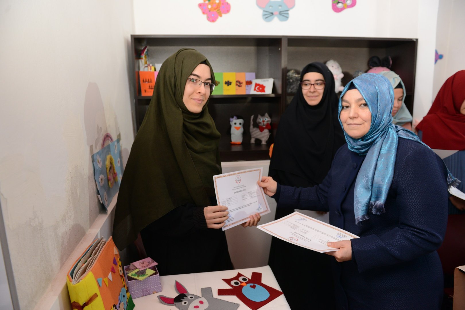 Kadın Kültür ve Sanat Merkezleri 2018-2019 Eğitim Öğretim Sezonunun ilk kursiyerleri sertifikalarını Belediye Başkanı Zeki Gül’ün eşi Halime Gül’ün elinden aldı.