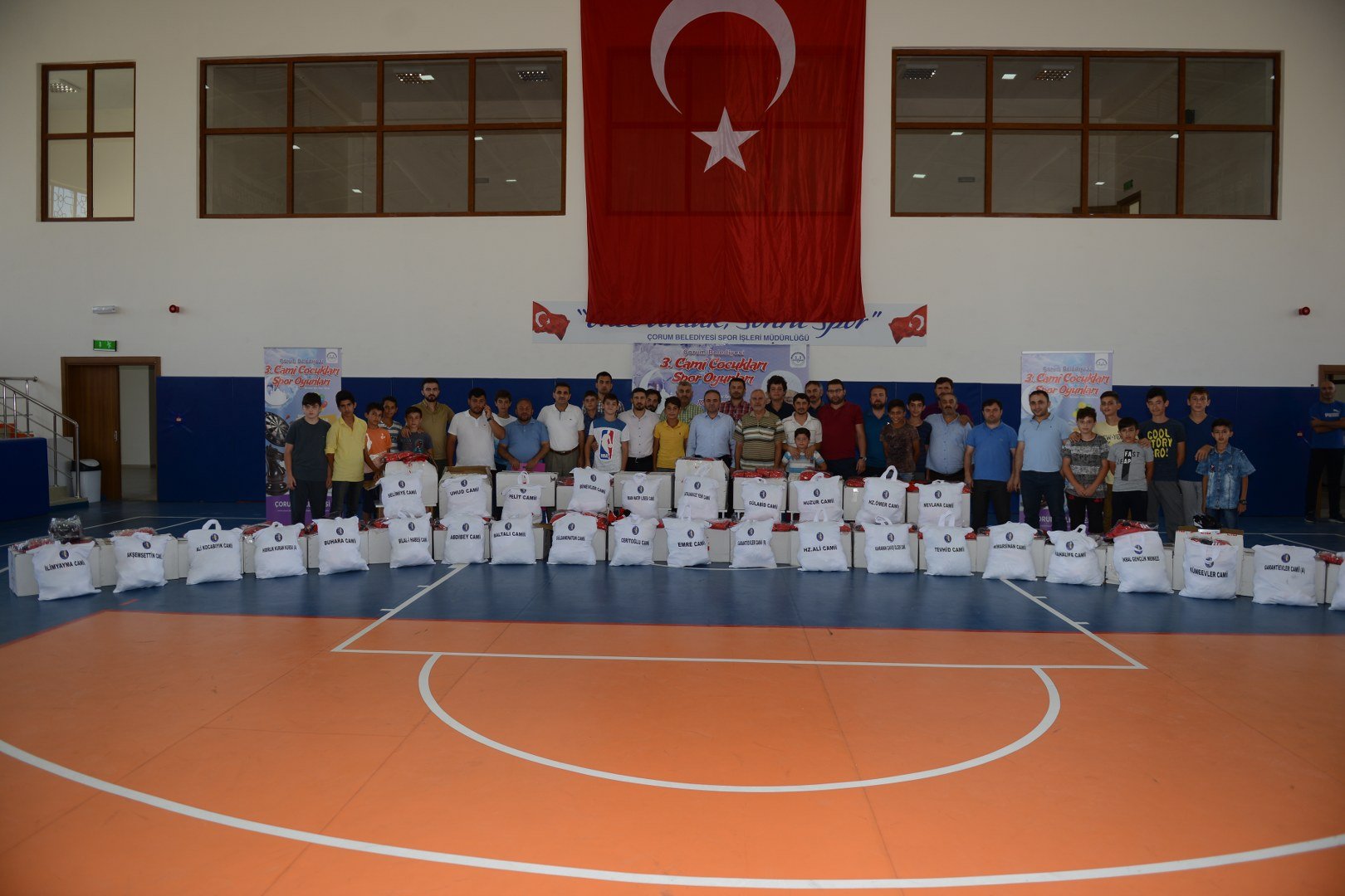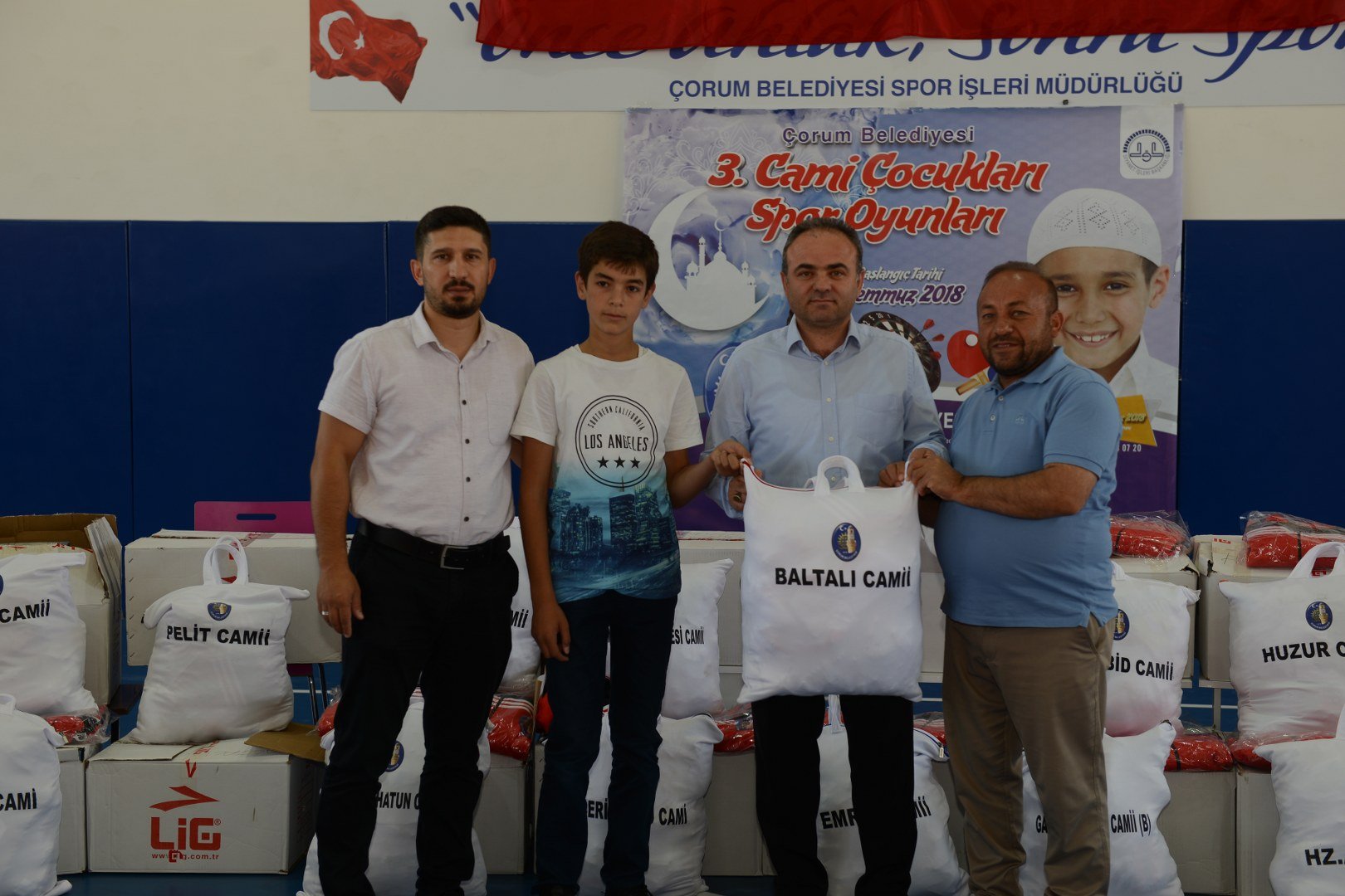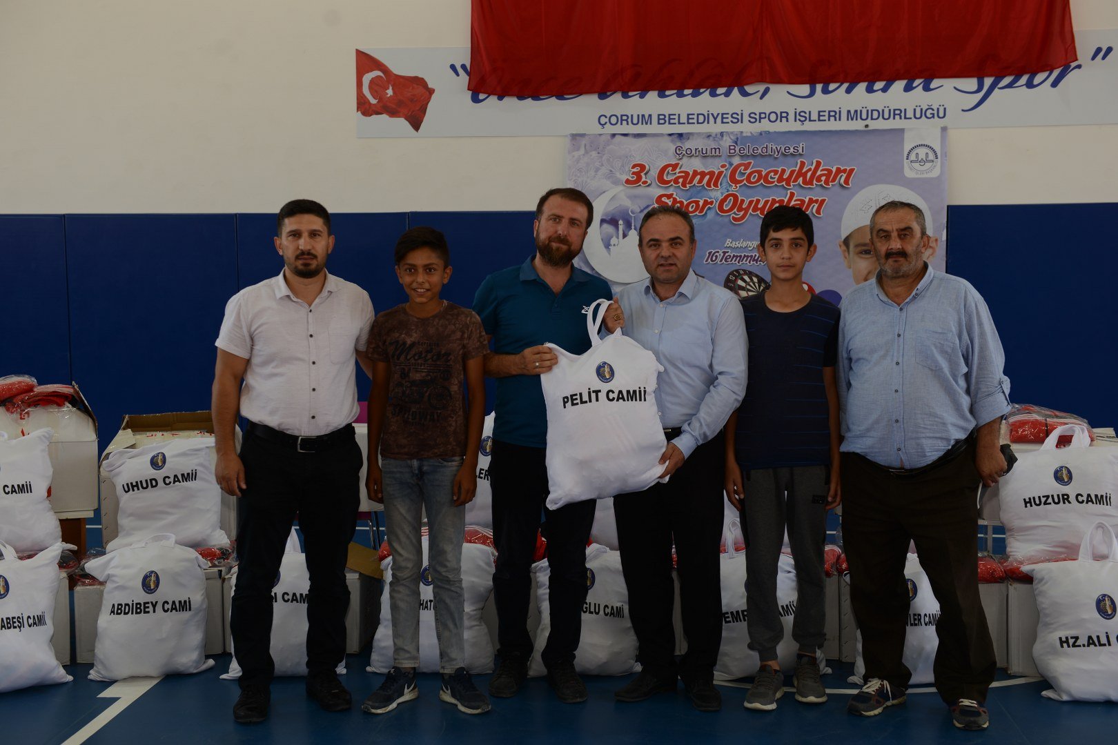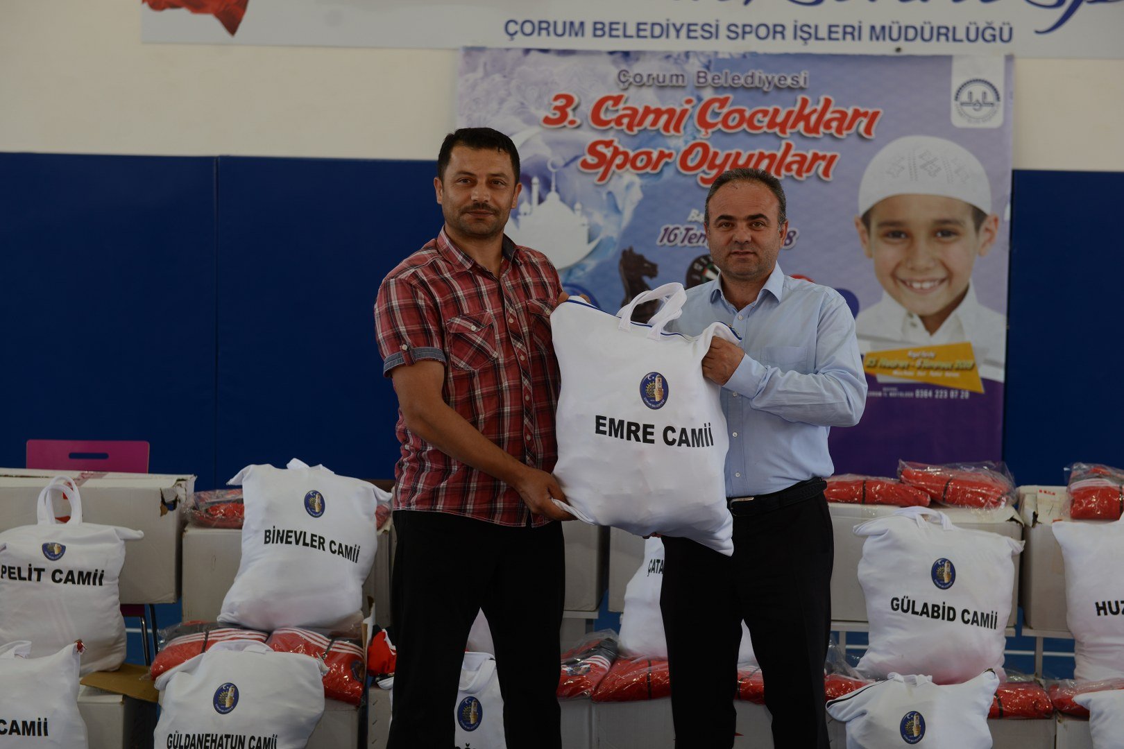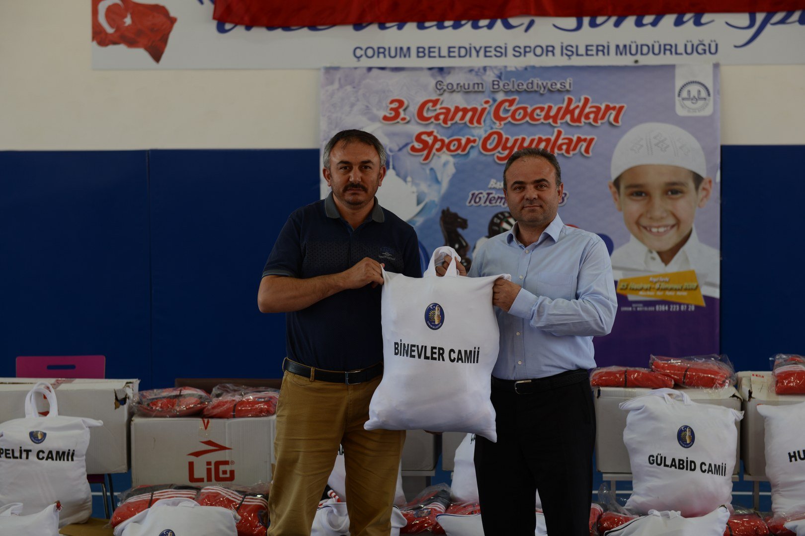 Çorum Belediyesi tarafından bu yıl 3.sü düzenlenen Cami Çocukları Spor Oyunları Futbol Turnuvasına katılan takımlara malzemeleri dağıtıldı.