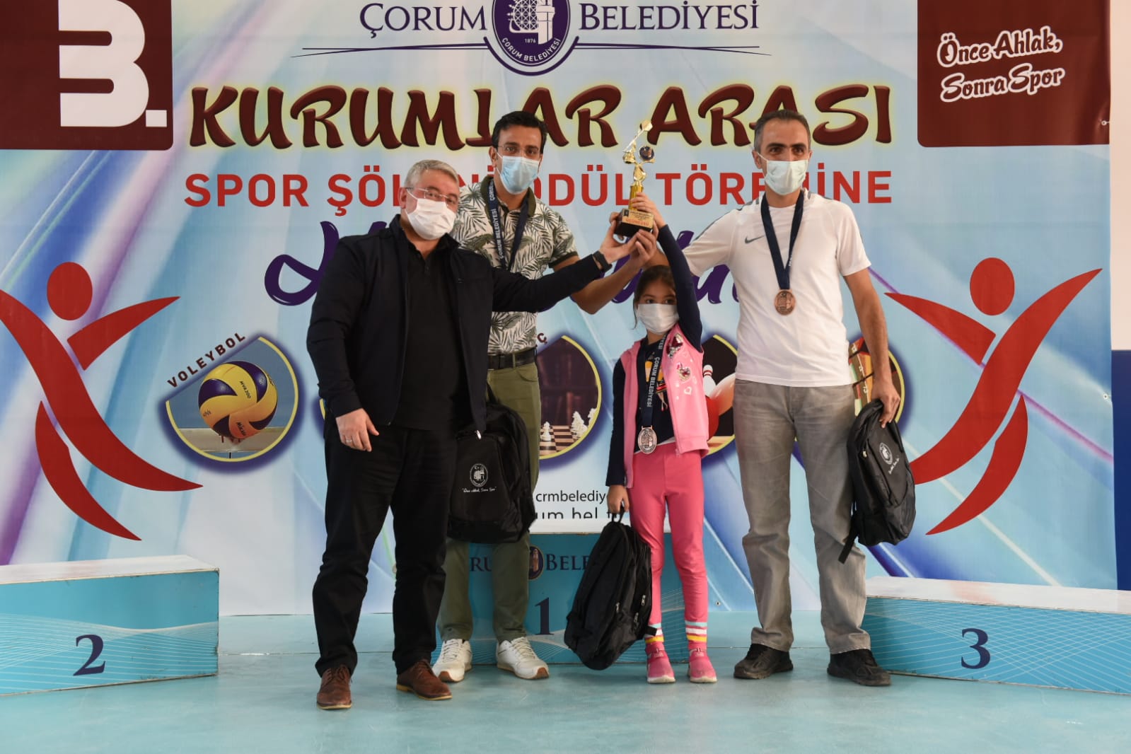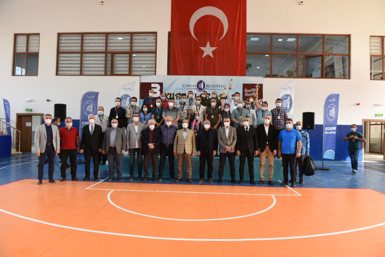 Şehit Abdullah Tayyip Olçok Spor Salonu’nda düzenlenen ödül törenine AK Parti Çorum Milletvekili Erol Kavuncu, Belediye Başkanımız Dr. Halil İbrahim Aşgın, Hitit Üniversitesi Rektörü Prof. Dr. Ali Osman Öztürk, Spor Bilimleri Fakültesi Dekanı Prof. Dr. Halil İbrahim Şimşek, İl Sağlık Müdürü Ömer Sobacı, Gençlik Spor İl Müdürü Haşim Eğer, AK Parti İl Başkan Yardımcısı Ercan Daşdan ve Emre Turan, Amatör Spor Kulüpleri Federasyonu Başkanı Sefer Kurtaran, Belediye Başkan Yardımcıları ile turnuvada mücadele eden sporcular ve yakınları katıldı.