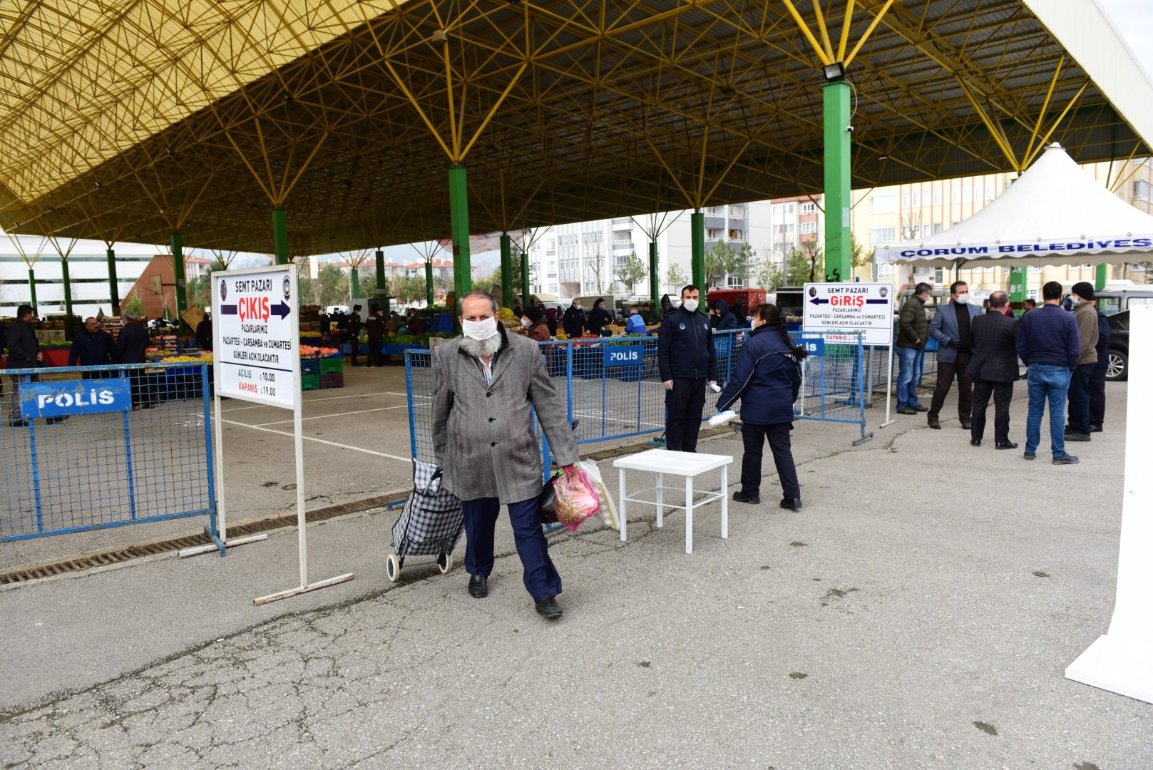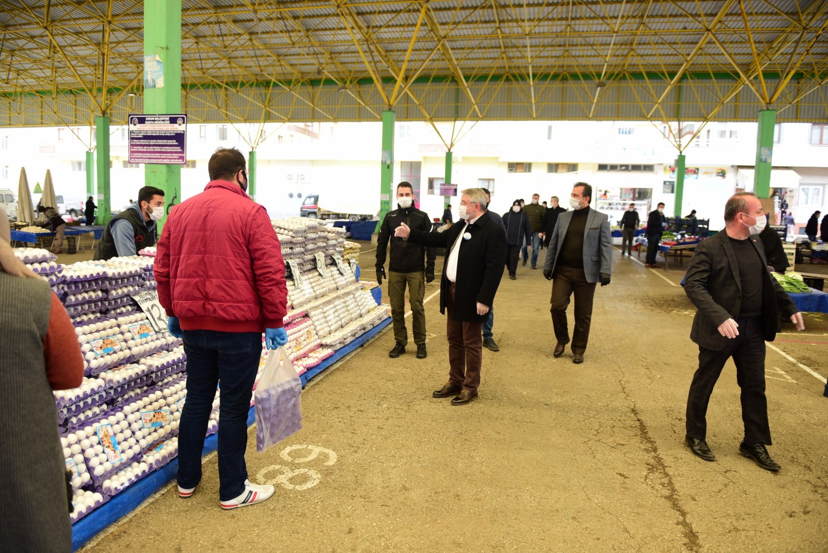 Belediye Başkanımız Dr. Halil İbrahim Aşgın, pazar yerlerinde Çorum Belediyesi’nin ücretsiz maske ve eldiven dağıttığını söyledi. Zabıta ekipleri ve güvenlik personelinin pazarlara giriş çıkışlarda ateş ölçerlerle vatandaşlara yüksek ateş kontrolü yaptığını da kaydeden Başkan Aşgın, “Yaptığımız çalışmalar koronavirüs tedbirleri kapsamında elbette çok önemli çalışmalar. Ancak, hükumetimiz tarafından alınan kararlar doğrultusunda sokağa çıkma yasağı bulunan yaş guruplarının evlerinde kalmaları, diğer vatandaşlarımızın da işlerini biran önce halledip evlerine dönmeleri bu illeti bir an önce yenmemiz için önem arz ediyor.” dedi.