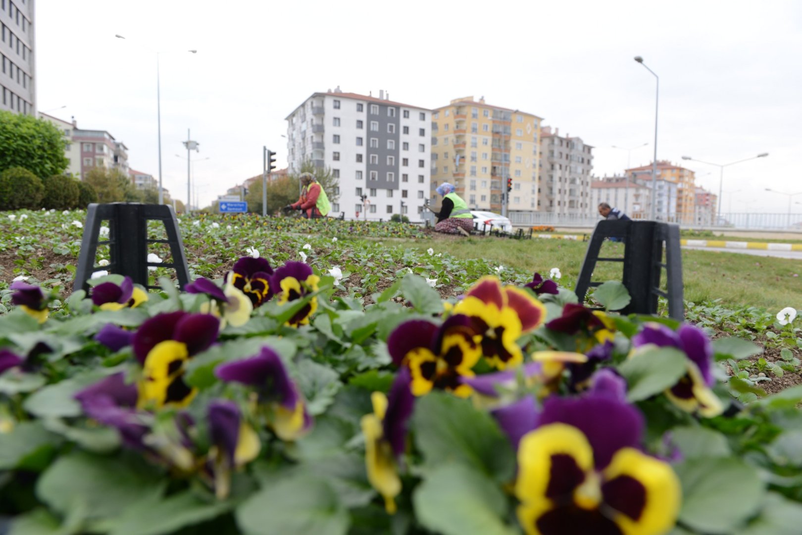 Çorum’u daha güzel bir görünüme kavuşturmak için çalışmalarına devam eden Çorum Belediyesi Park ve Bahçeler Müdürlüğü ekipleri, kış sezonu için şehrin muhtelif yerlerini hercai menekşe çiçeği ile renklendiriyor.