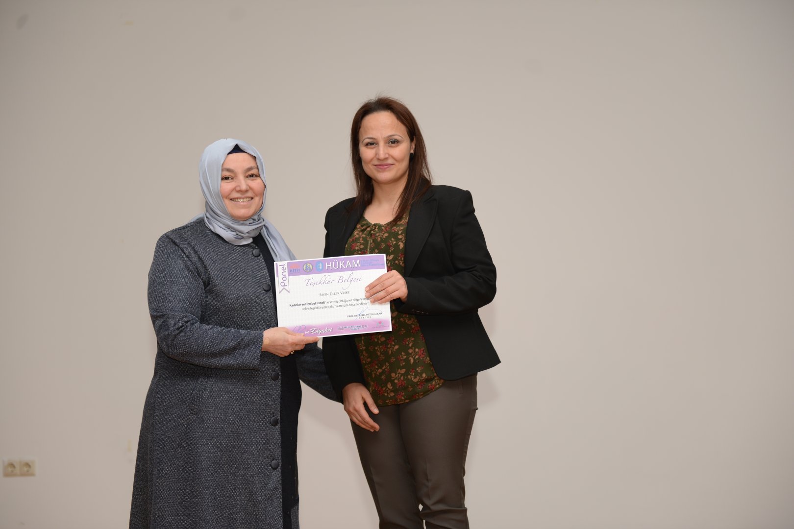 Panelin sonunda Hitit Üniversitesi Rektör Yardımcısı Prof. Dr. Nurcan Baykan, Hitit Üniversitesi Tıp Fakültesi Dahili Tıp Bilimleri, Endokronoloji ve Metobolizma Hastalıkları Bölümü Öğretim Üyesi Doç. Dr. Ferit Kerim Küçükler, Hitit Üniversitesi Erol Olçok Eğitim ve Araştırma Hastanesi Diyabet Eğitim Birimi Eğitim Hemşiresi Hülya Çiçek Acar ve Dilek Veske’ye Çorum Belediye Başkanı Zeki Gül’ün eşi Halime Gül tarafından teşekkür belgesi verildi.