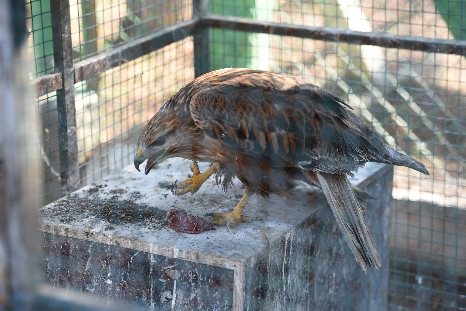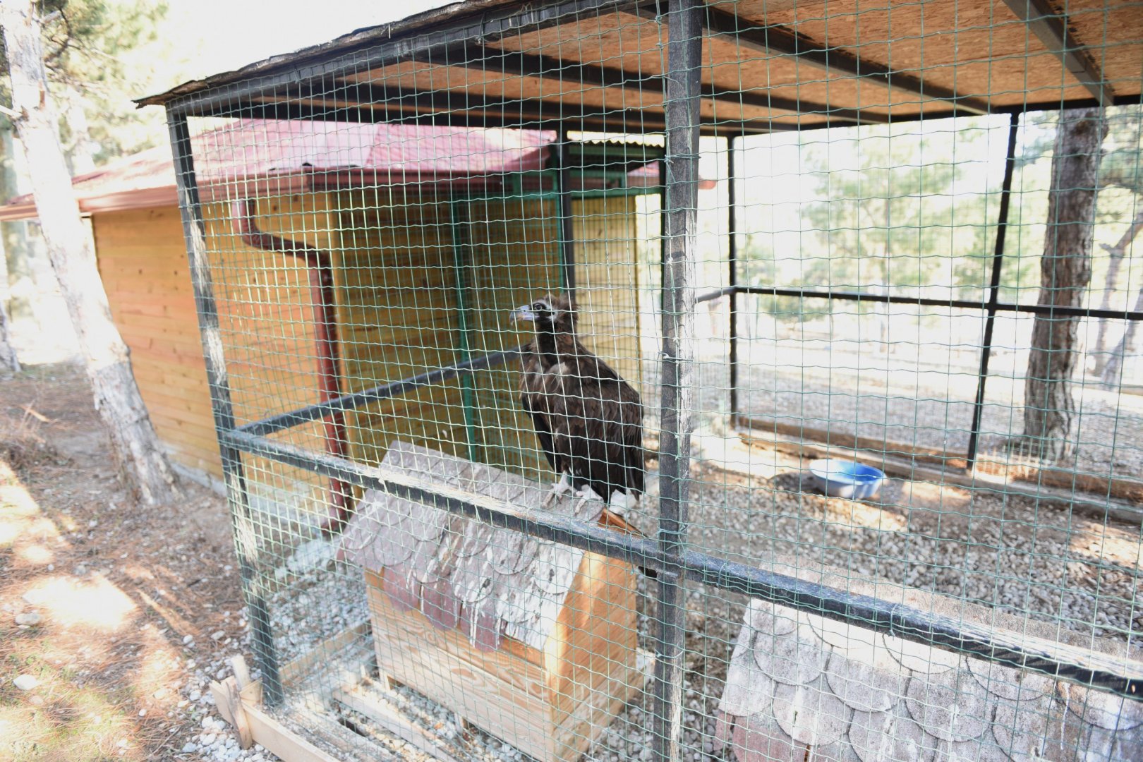 Çorum Belediyesi Veteriner İşleri Müdürlüğü Hayvan Bakımevinde 4 aydır tedavisi devam eden kara akbaba, bakımevinin maskotu oldu. ile bakıcılar arkadaş oldu.