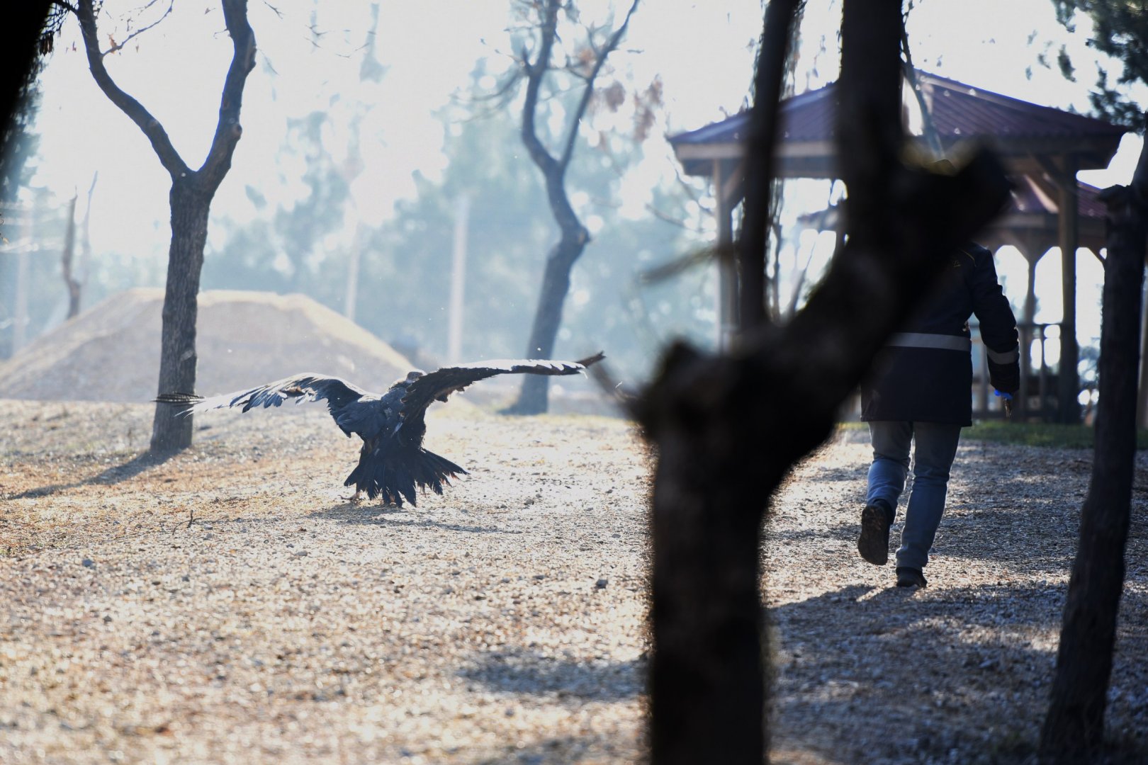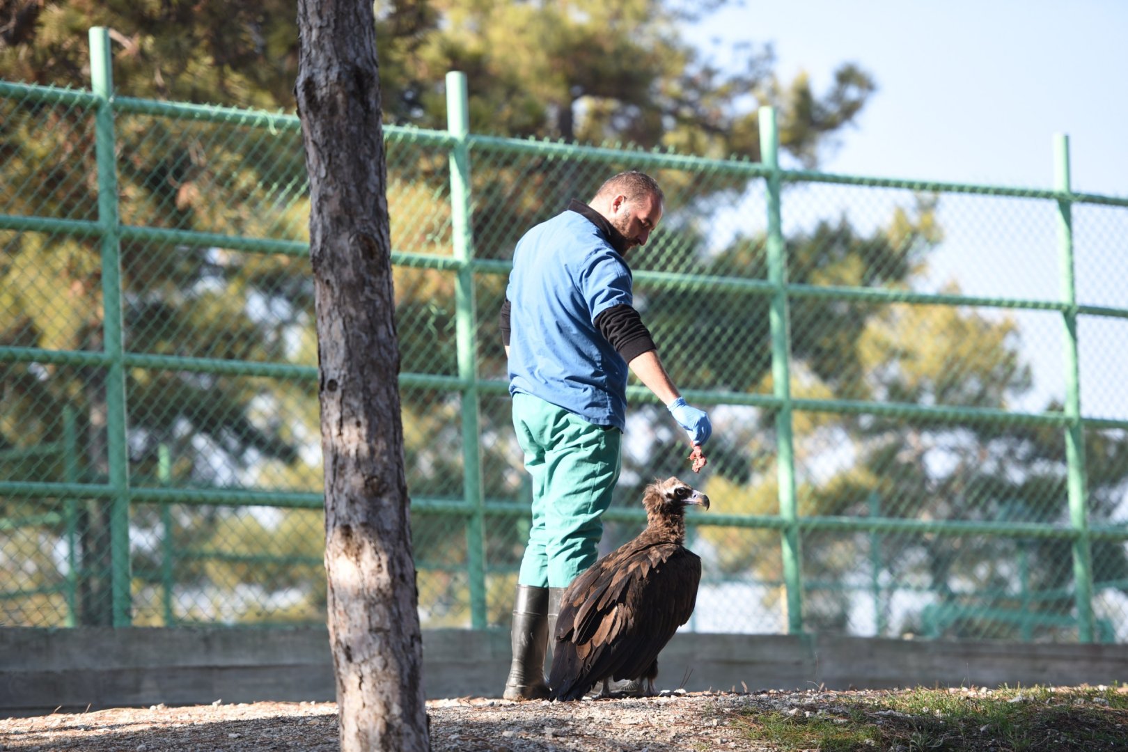 Yarası tedavi edilen Kara akbaba 4 aylık tedavi ve bakım sürecinde bakıcılarına bir hayli alıştı. İlk zamanlar akbabanın saldırgan olduğunu, beslenmesi sırasında agresif tavırlar sergilediğini ifade eden bakımevi yetkilileri “Akbabayla buraya geldiğinden itibaren yakından ilgileniyoruz. Yarasını tedavi ettik, bakımlarını yapıyoruz. Birlikte geçirdiğimiz 4 ay kadar sürede birbirimize alıştık. Kanat antrenmanını yapması için kafesinden çıkartıp gezdiriyoruz. Bu ilgi onun da bize alışmasını sağladı. Arkadaş olduk. Birlikte yürüyoruz, elimizle besliyoruz. Her ne kadar ürkütücü gözükseler, doğalarına aykırı olsa da bütün hayvanlar gibi onlar da sevgiye karşılık veriyorlar. Bu anlamda üzücü olacak ama tam olarak iyileştiği zaman DKMP ekiplerine teslim ederek doğal yaşam alanına bırakılmasını sağlayacağız” dedi.