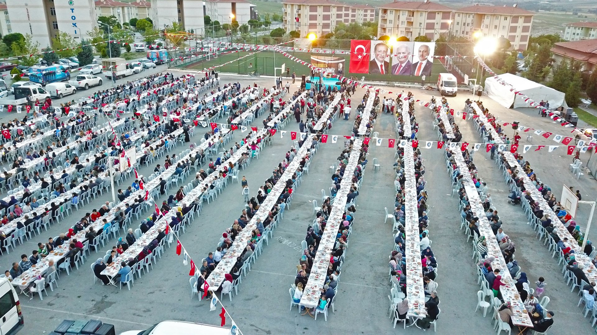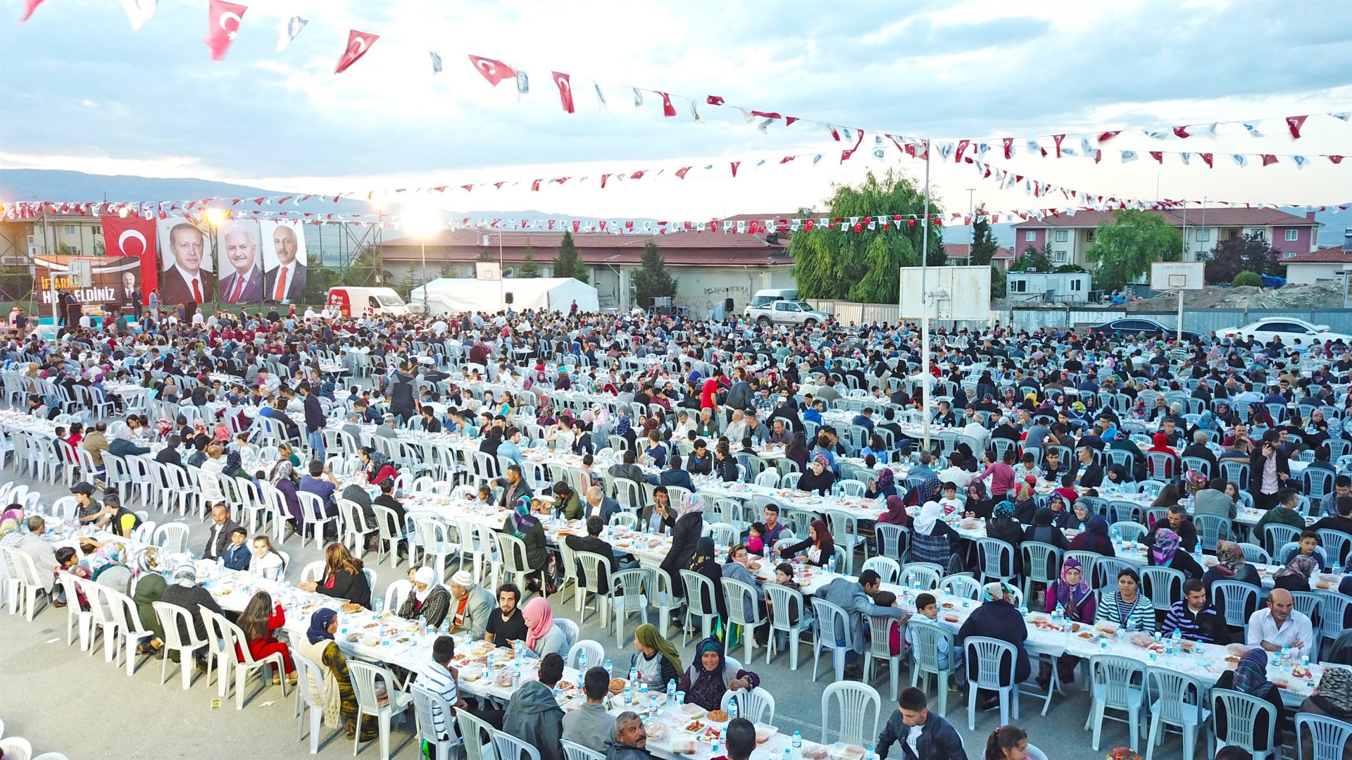 Vatandaşların iftar heyecanına ortak olmak amacıyla başlatılan mahalle iftarı bu kez Akkent Mahallesinde semt pazarının kurulduğu alanda kuruldu. Mübarek Ramazan ayının tüm güzelliği ile birlik ve beraberlik duygularıyla Akkent Mahallesi’nde (TOKİ) ikamet eden vatandaşlar için kurulan iftar yemeğine AK Parti Milletvekili ve yeni dönem milletvekili adayı Ahmet Sami Ceylan, Belediye Başkanı Zeki Gül, Belediye Başkan Yardımcıları, AK Parti Milletvekili adayları Erol Kavuncu, Serap Yıldırım, Ak Parti Merkez İlçe Başkanı Erhan Akar, AK Parti Seçik Koordinasyon Merkezi Başkanı Eyüp Arslan, AK Parti Kadın Kolları Başkanı Meryem Demir, Belediye Meclis Üyeleri, AK Parti Kadın Kolları Üyeleri, Akkent Mahalle Muhtarı Necip Güler, Gençlik Kolları üyeleri ve 4.500 vatandaş katıldı.