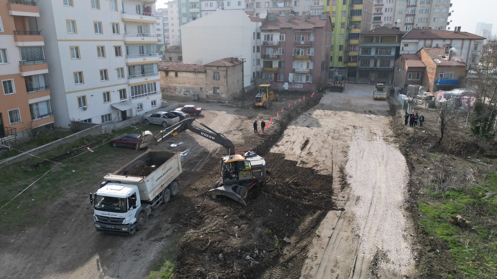 Çorum Belediyesi, Akpınar 1. Cadde’de yol açma çalışmaları başladı. Kamulaştırma ve yıkım işlemleri tamamlanan bölgede yol açma çalışmaları için kazı ve dolu işlemleri yapılıyor.