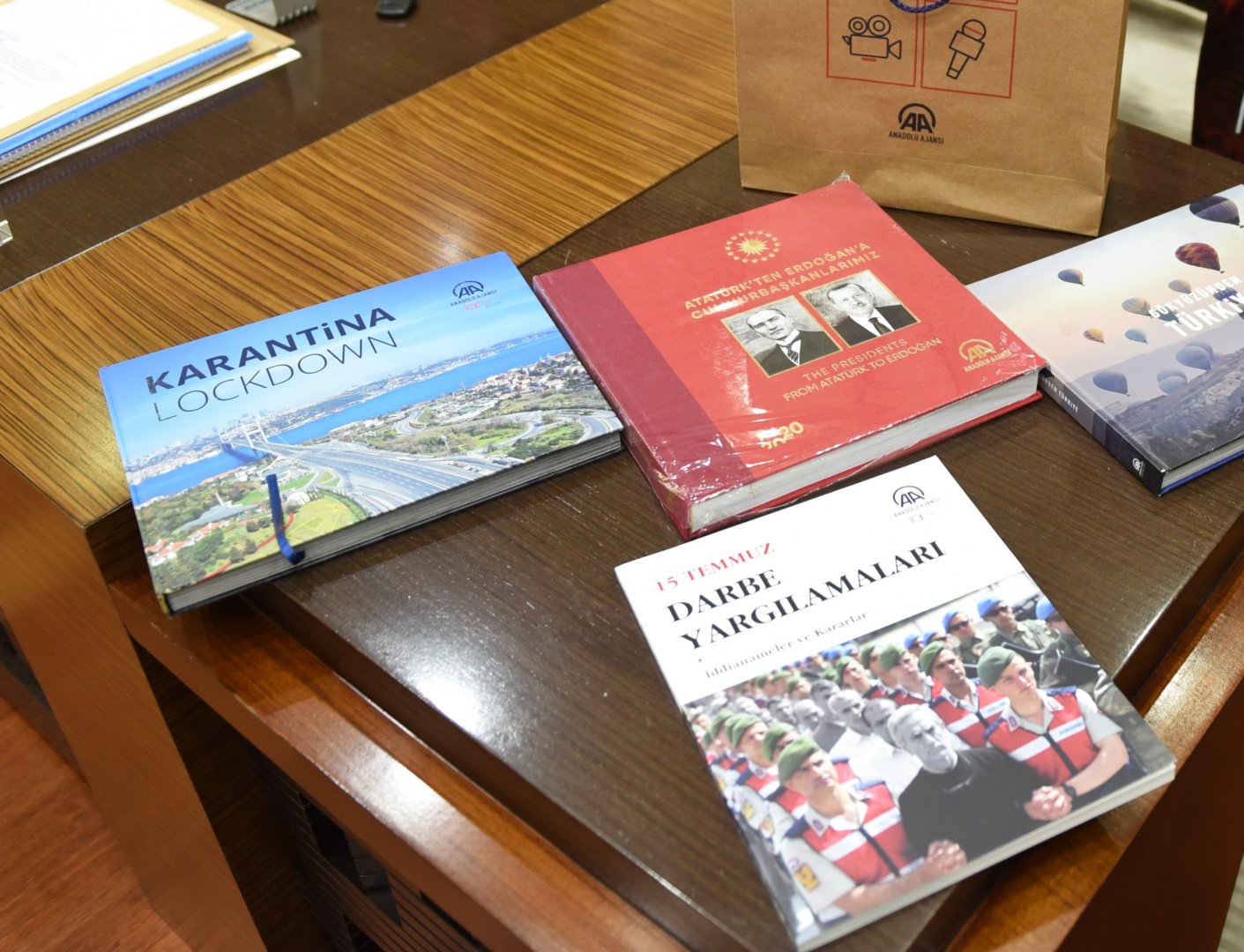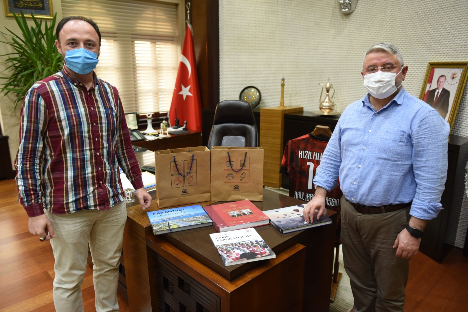 Ceylan, AA’nın 100. yılı dolayısıyla hazırlanan “Türkiye ve Dünyada 100 Yıl” adlı eserin yanı sıra Anadolu Ajansı Dünya Dilleri Yayın Yönetmeni hemşehrimiz Mehmet Öztürk’ün gönderdiği hediye kitaplar “Atatürk’ten Erdoğan’a Cumhurbaşkanlarımız”, “15 Temmuz Darbe Yargılamaları” ve pandemi dolayısıyla uygulanan sokağa çıkma kısıtlaması esnasında bomboş kalarak ürpertici bir manzara oluşturan meşhur meydan ve noktaların yer aldığı, dünya çapında ses getiren bir eser olan “Karantina Lockdown” adlı fotoğraf albümünü de Başkan Aşgın’a sundu.