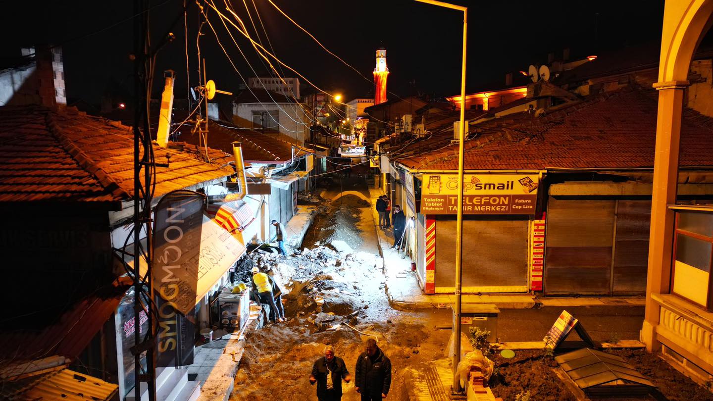 altyapısını da yeniliyor. Kanalizasyon ve su hatlarının değiştirildiği arasta,