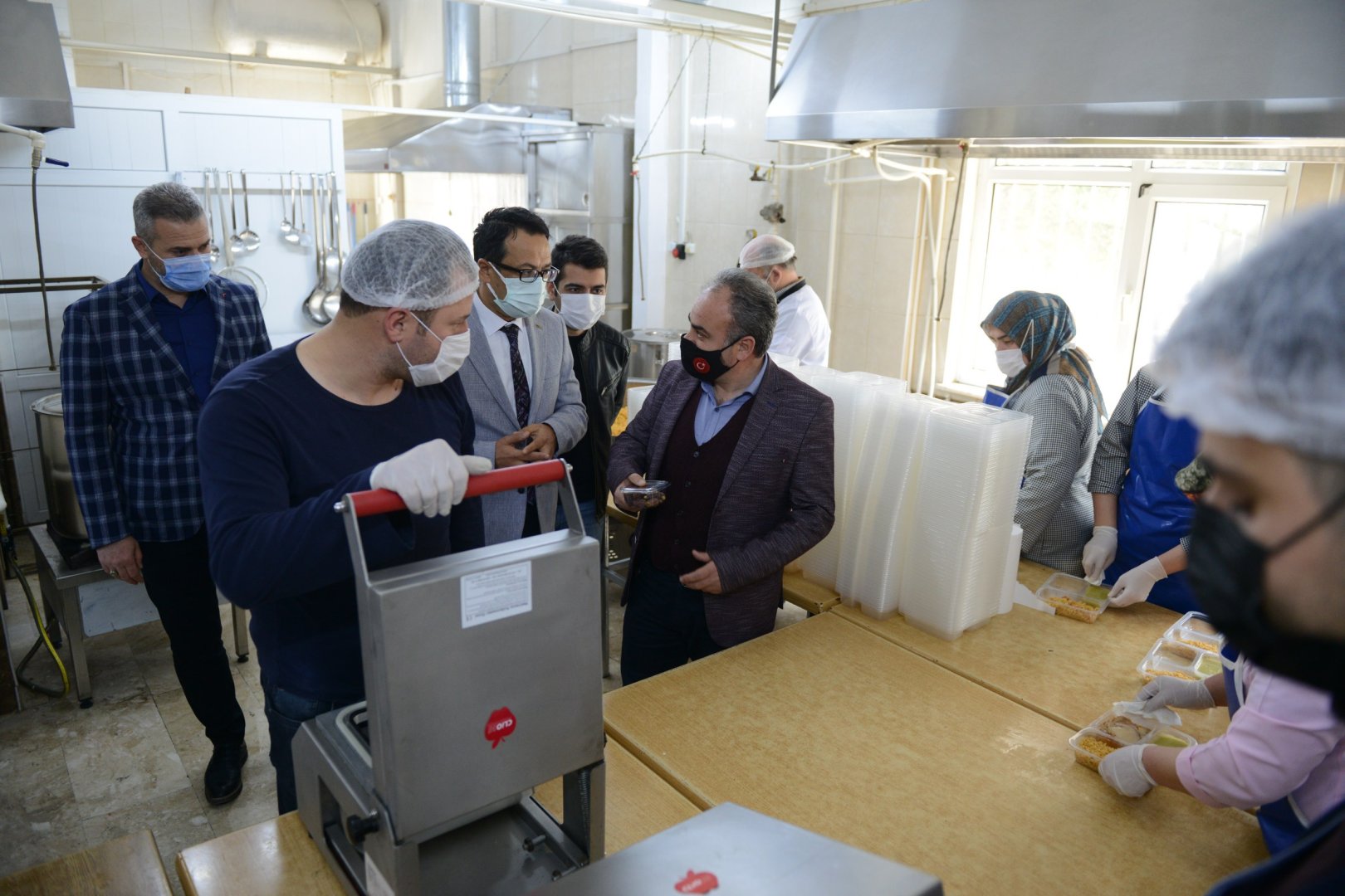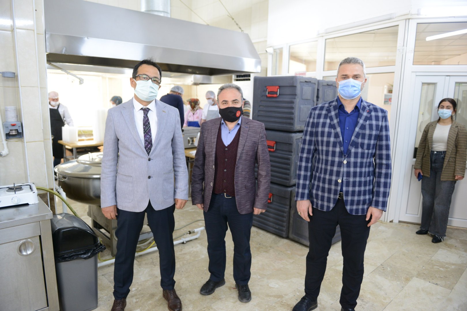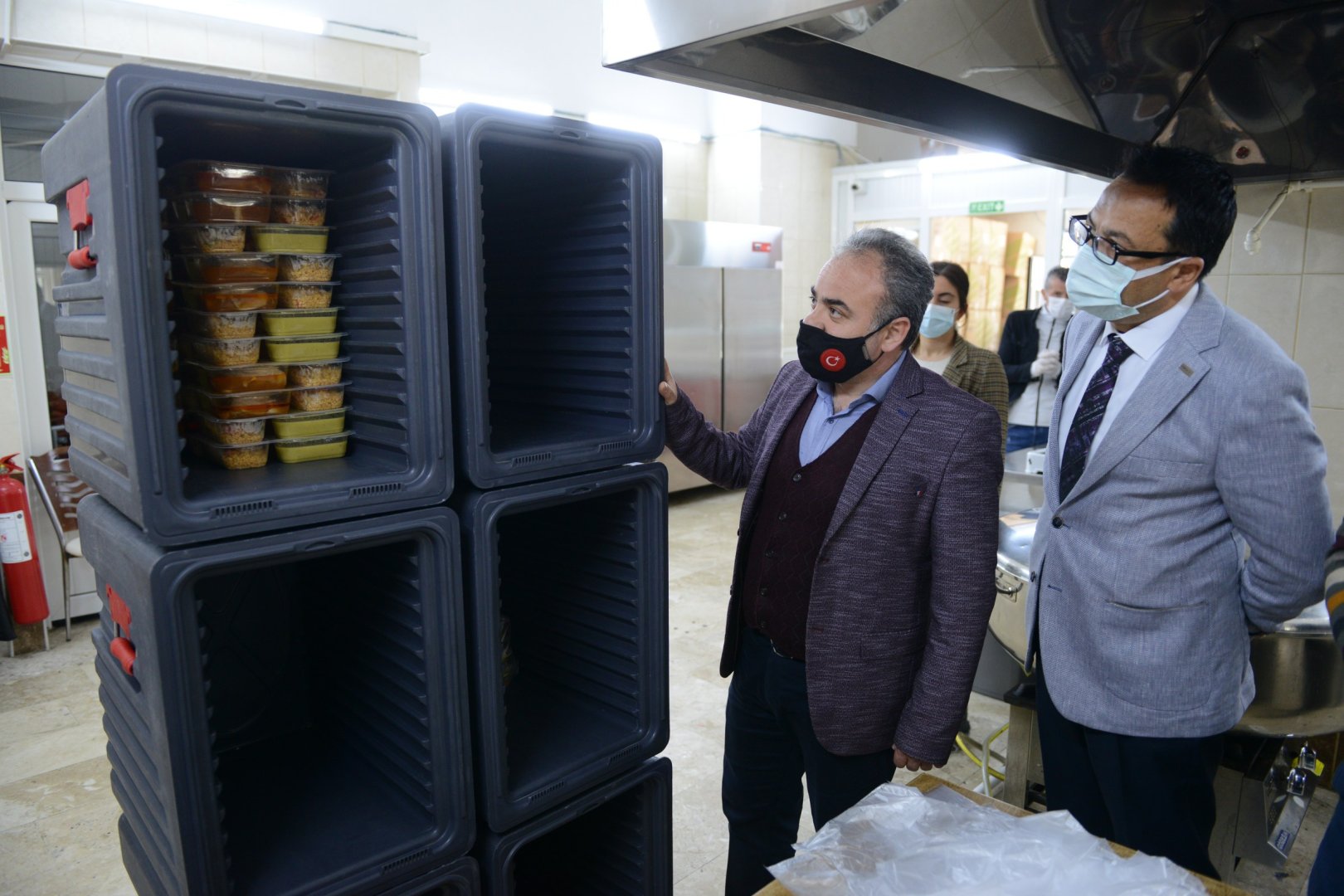 Aşevini ziyaret eden Belediye Başkan Yardımcımız Turhan Candan ve Sosyal Yardımlaşma ve Dayanışma Vakfı Müdürü Zekeriya Doğan, yapılan hizmet ve çalışmalar hakkında bilgiler alarak, ihtiyaç sahiplerine ulaştırılmak için hazırlanan yemekleri bizzat inceledi. Günlük 1000 den fazla kişiye sıcak iftar yemeği ulaştırdıklarını ifade eden Belediye Başkan Yardımcımız Turhan Candan ‘’ Rahmet ve bereket iklimi olan Ramazan ayına kavuşmanın sevincini yaşıyoruz. Pandemi şartları gereğince bu sene de iftar çadırı kuramadık. Ama geçtiğimiz yıl olduğu gibi, Çorum Valiliğimiz ve Çorum Belediyemiz işbirliği içerisinde hemşehrilerimize iftar saatinde sıcak yemek ulaştırıyoruz. Burada, aşevinde yemekler öğle saatlerinden itibaren yapılmaya başlanıyor ve özel ambalajlarda ısısı muhafaza edilerek iftar öncesi 1000’in üzerinde hemşehrimize ulaştırılıyor” dedi.