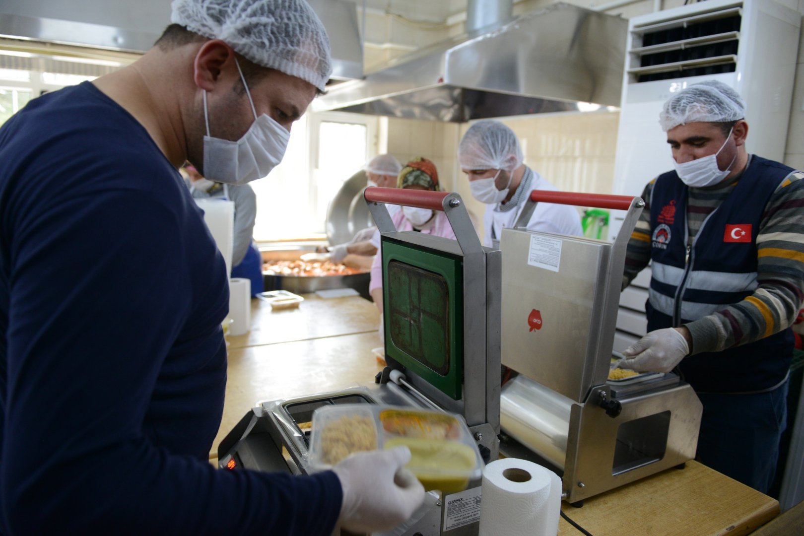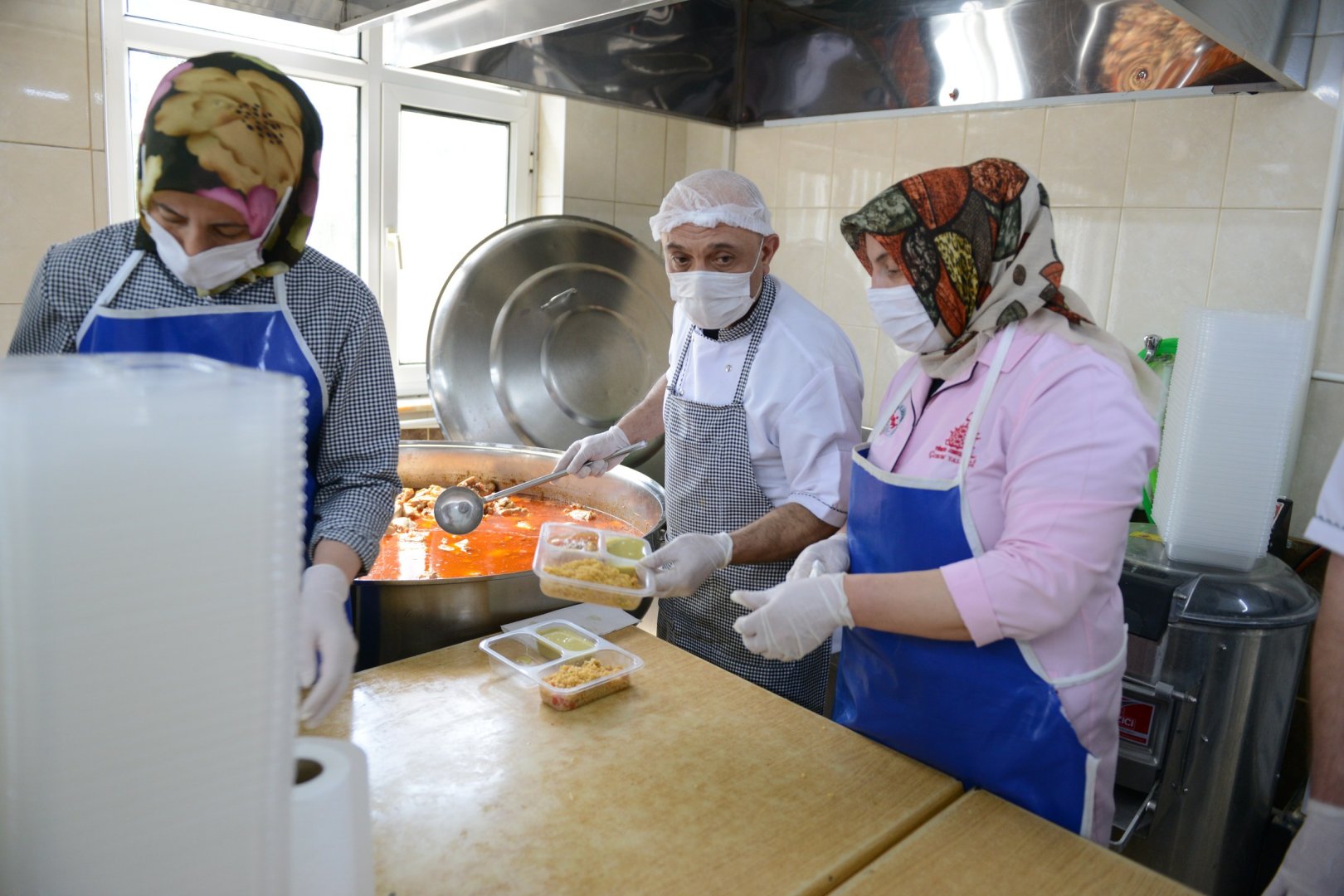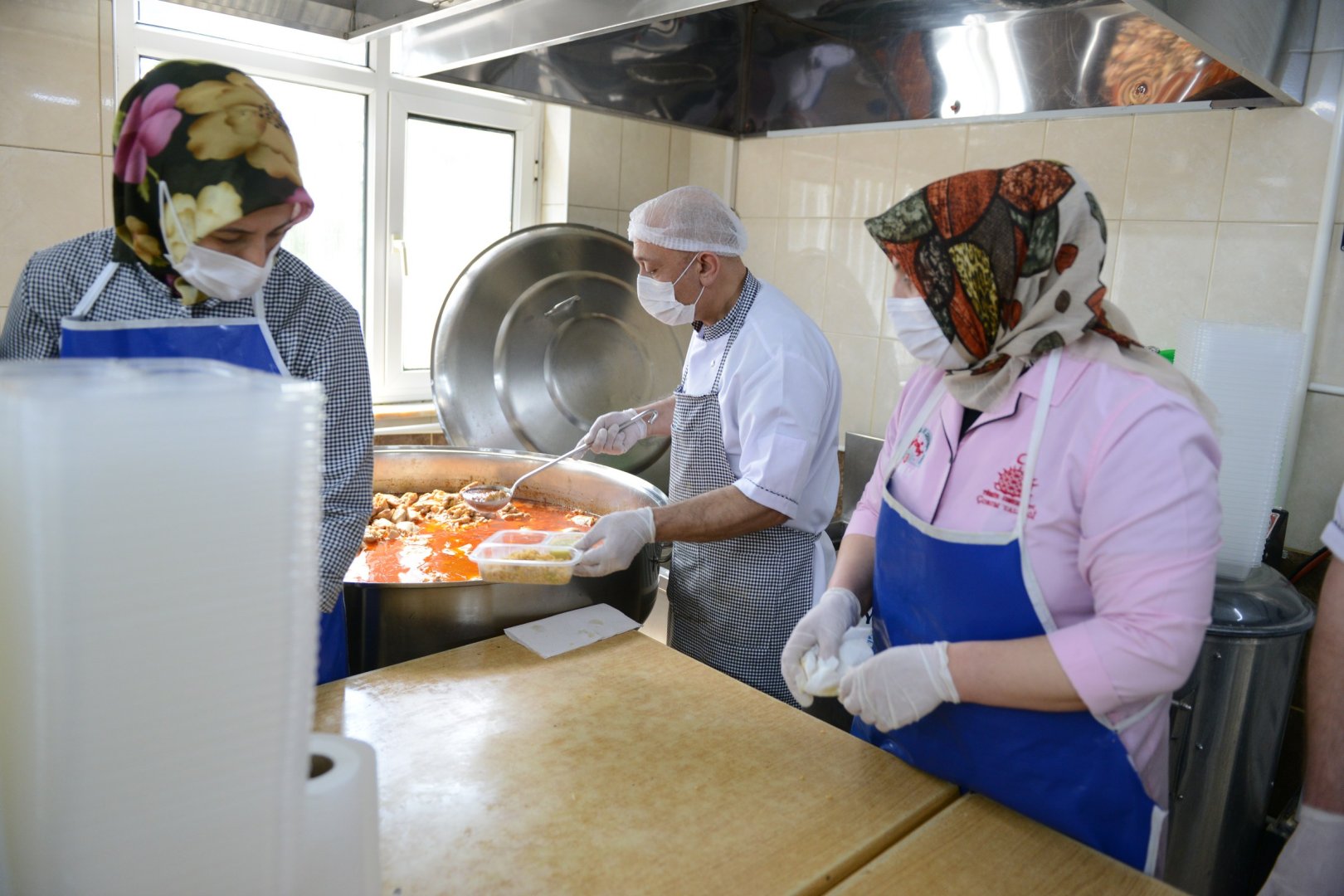 Aşevini ziyaret eden Belediye Başkan Yardımcımız Turhan Candan ve Sosyal Yardımlaşma ve Dayanışma Vakfı Müdürü Zekeriya Doğan, yapılan hizmet ve çalışmalar hakkında bilgiler alarak, ihtiyaç sahiplerine ulaştırılmak için hazırlanan yemekleri bizzat inceledi. Günlük 1000 den fazla kişiye sıcak iftar yemeği ulaştırdıklarını ifade eden Belediye Başkan Yardımcımız Turhan Candan ‘’ Rahmet ve bereket iklimi olan Ramazan ayına kavuşmanın sevincini yaşıyoruz. Pandemi şartları gereğince bu sene de iftar çadırı kuramadık. Ama geçtiğimiz yıl olduğu gibi, Çorum Valiliğimiz ve Çorum Belediyemiz işbirliği içerisinde hemşehrilerimize iftar saatinde sıcak yemek ulaştırıyoruz. Burada, aşevinde yemekler öğle saatlerinden itibaren yapılmaya başlanıyor ve özel ambalajlarda ısısı muhafaza edilerek iftar öncesi 1000’in üzerinde hemşehrimize ulaştırılıyor” dedi.