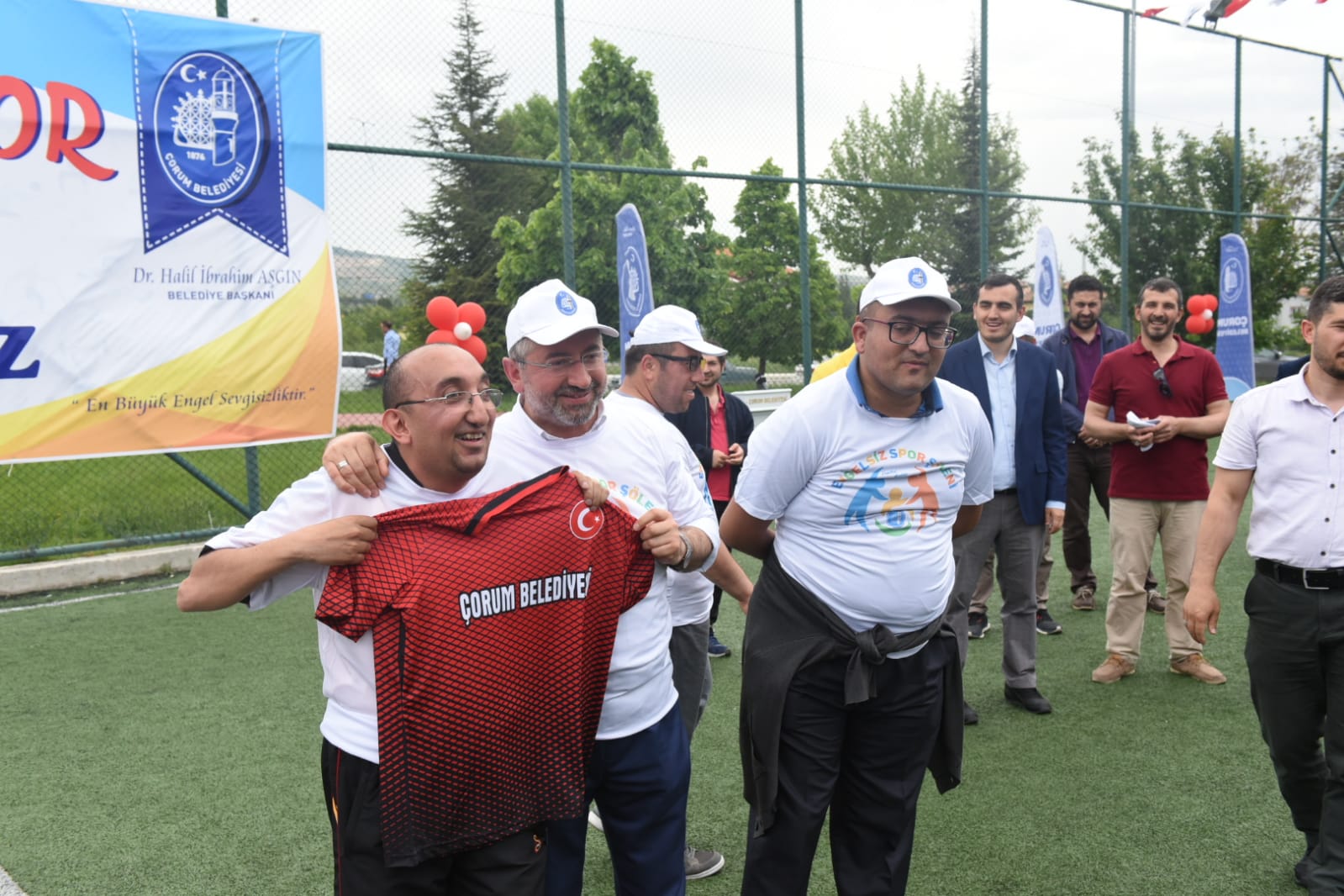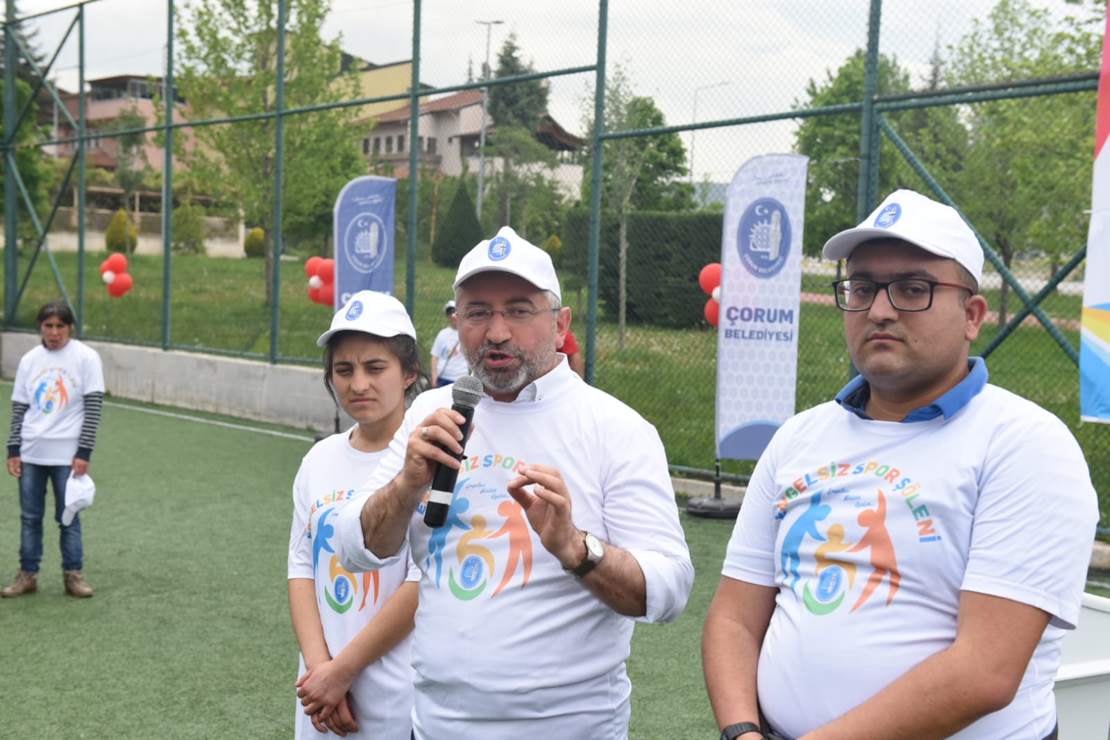 Sakatlar Derneği Çorum Şube Başkanı Yusuf Hoşnut konuşmasında, asıl engelin insanın kendi düşüncesi olduğunu belirtirken ardından konuşma yapan Türkiye Zihinsel Engelliler Federasyonu Genel Başkan Yardımcısı Neslihan Hüsülüoğulları ve Gençlik ve Spor İl Müdürü Haşim Eğer Belediyeye ve Spor İşleri Müdürlüğüne katkılarından dolayı teşekkür etti.