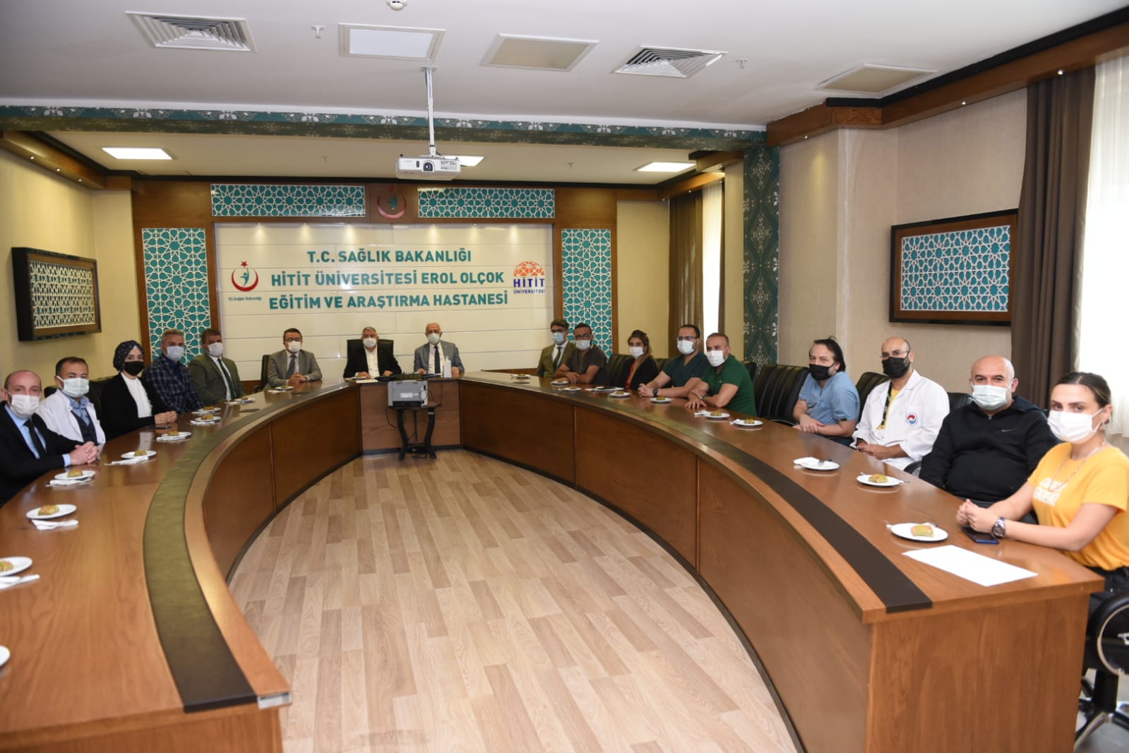 Hitit Üniversitesi Erol Olçok Eğitim ve Araştırma Hastanesi toplantı salonunda İl Sağlık Müdürü Uzm. Dr. Ömer Sobacı, Başhekim Prof. Dr. Mesut Sezikli, sünnet şölenine katılan çocukların sünnetini gerçekleştiren doktorlar ve hastane yöneticileriyle bir araya gelen Başkan Aşgın’a Belediye Başkan Yardımcımız Zübeyir Tuncel ve Sosyal İşler Müdürümüz Fatih Sak eşlik etti.