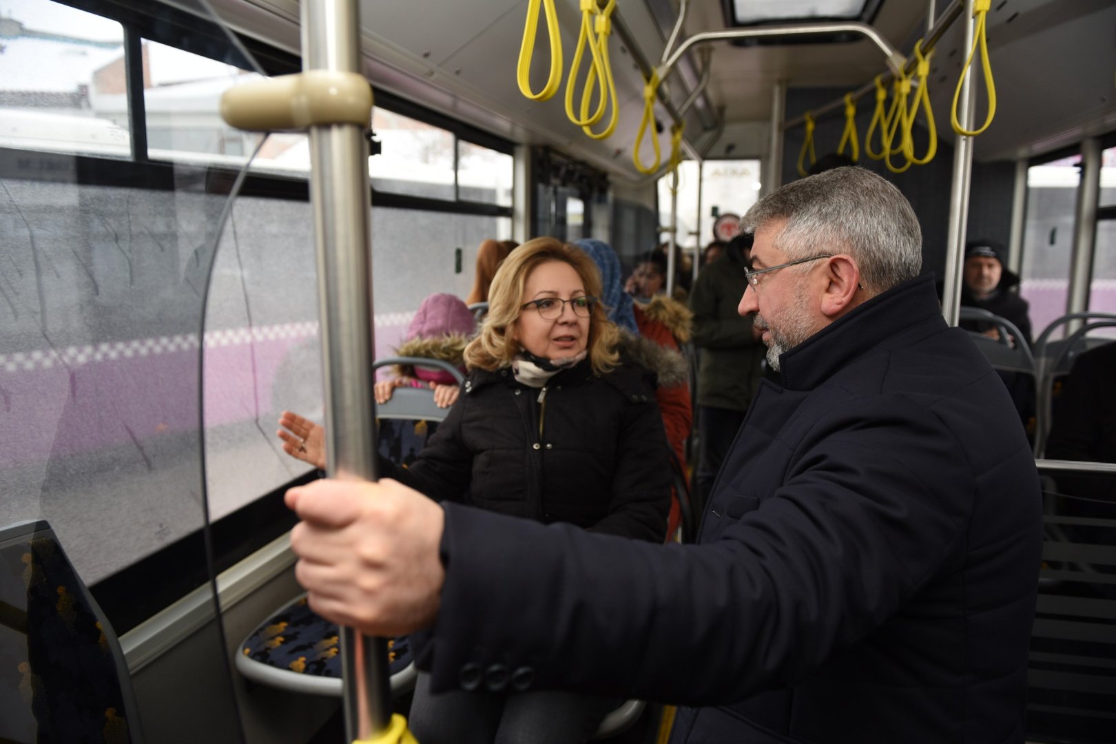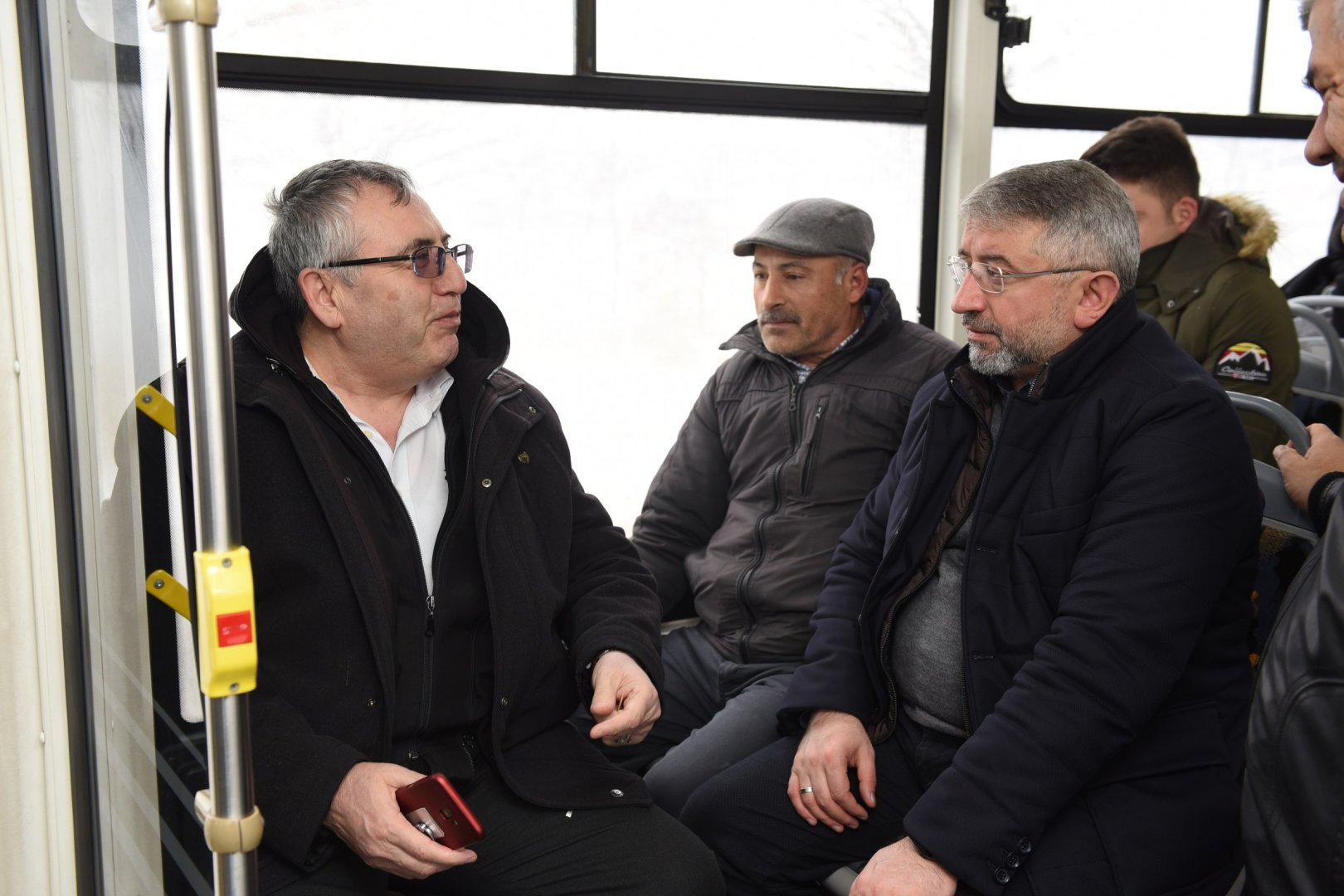 Kar yağışı sonrası otobüs seferlerinin durumunu ve halk otobüslerini tercih eden vatandaşların sorunlarını öğrenmek amacıyla merkez otobüs durağına giden Başkan Aşgın, burada Akkent otobüsüne binerek vatandaşlarla sohbet etti. Toplu taşımayı kullanan vatandaşların görüşlerini dinleyen Başkan Aşgın, zaman zaman toplu ulaşımla alakalı eleştiri ve şikayetlerin geldiğini ancak bunlara en kısa sürede müdahale etmeye gayret ettiklerini söyledi. Toplu taşımın kendileri için hassas oldukları konulardan biri olduğunu dile getiren Başkan Aşgın, “Toplu ulaşımla alakalı ciddi kararlar aldık ve yenilikler yaptık. Otobüs güzergâhları konusunda çok fazla şikayet alıyorduk. Bu konuda muhtarlarımızdan, Ulaş AŞ. yöneticilerinden ve Belediyemiz çalışanlarından oluşan bir heyetle istişareler neticesinde otobüs hatlarının güzergahları ve hat sayılarında değişiklikler yaptık. Şikâyetleri en aza indirdik” dedi.
