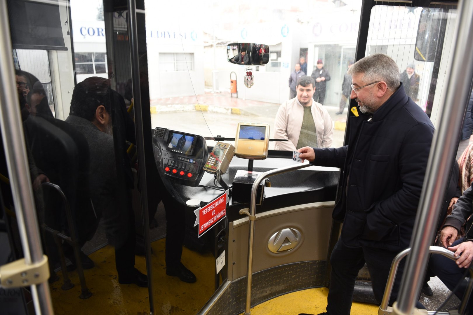Belediye Başkanı Dr. Halil İbrahim Aşgın, Akkent otobüsüne binerek güzergahtaki karla mücadele çalışmalarını da yakından takip etti.