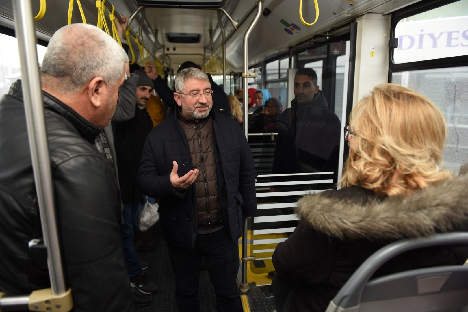 Belediye Başkanı Dr. Halil İbrahim Aşgın, toplu ulaşımla alakalı gelen şikâyetleri yerinde değerlendirmek için Akkent otobüsüne bindi. Vatandaşlarla sohbet eden Aşgın, toplu ulaşımla ilgili bilgiler aldı.