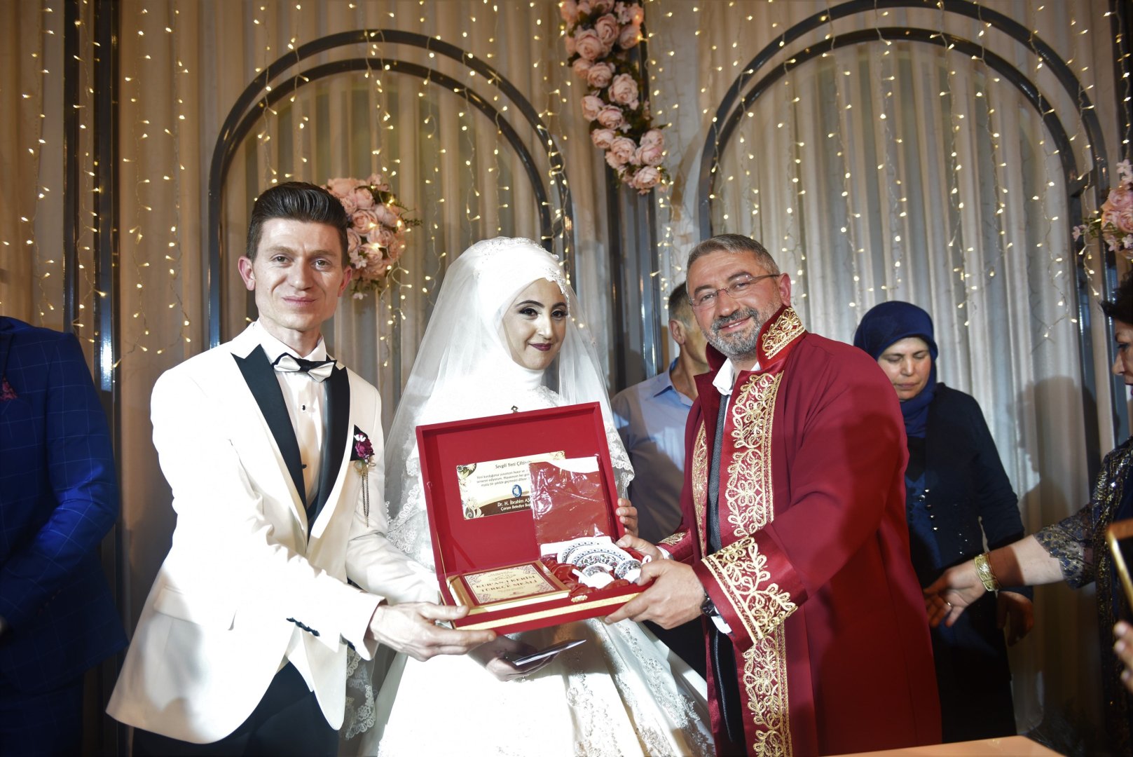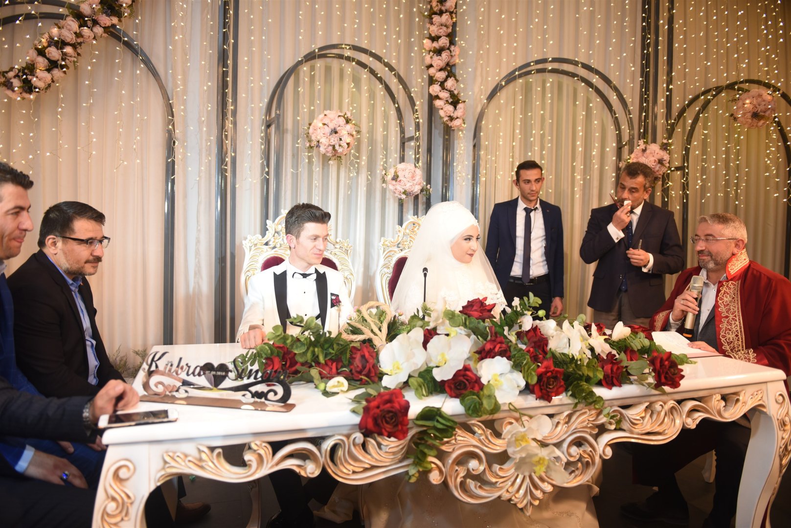 Esnaf ve vatandaşlara yönelik ziyaretleri sürdüren Belediye Başkanı Dr. Halil İbrahim Aşgın, Kübra ve Sinan çiftinin düğün törenine katılarak nikah akitlerini gerçekleştirdi. Başkan Aşgın, göreve başlamasının ardından ilk nikahını kıydı. Genç çifti ve ailelerini tebrik ederek çifte iki cihan saadeti diledi. Aşgın nikah cüzdanını geline takdim etti. Başkan Aşgın gelin ve damada Türk Bayrağı, Kuran-ı Kerim ve kahve fincanı hediye etti.