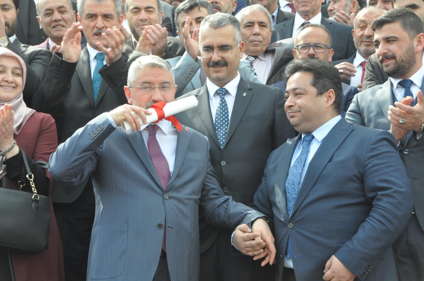 Mazbata töreni sonrasında kendisine bir genç tarafından Arapça “Elif-Vav” harf desenli tablo hediye edilen Aşgın, “Elif gibi dik, Vav gibi mütevazı olacağız.” dedi.