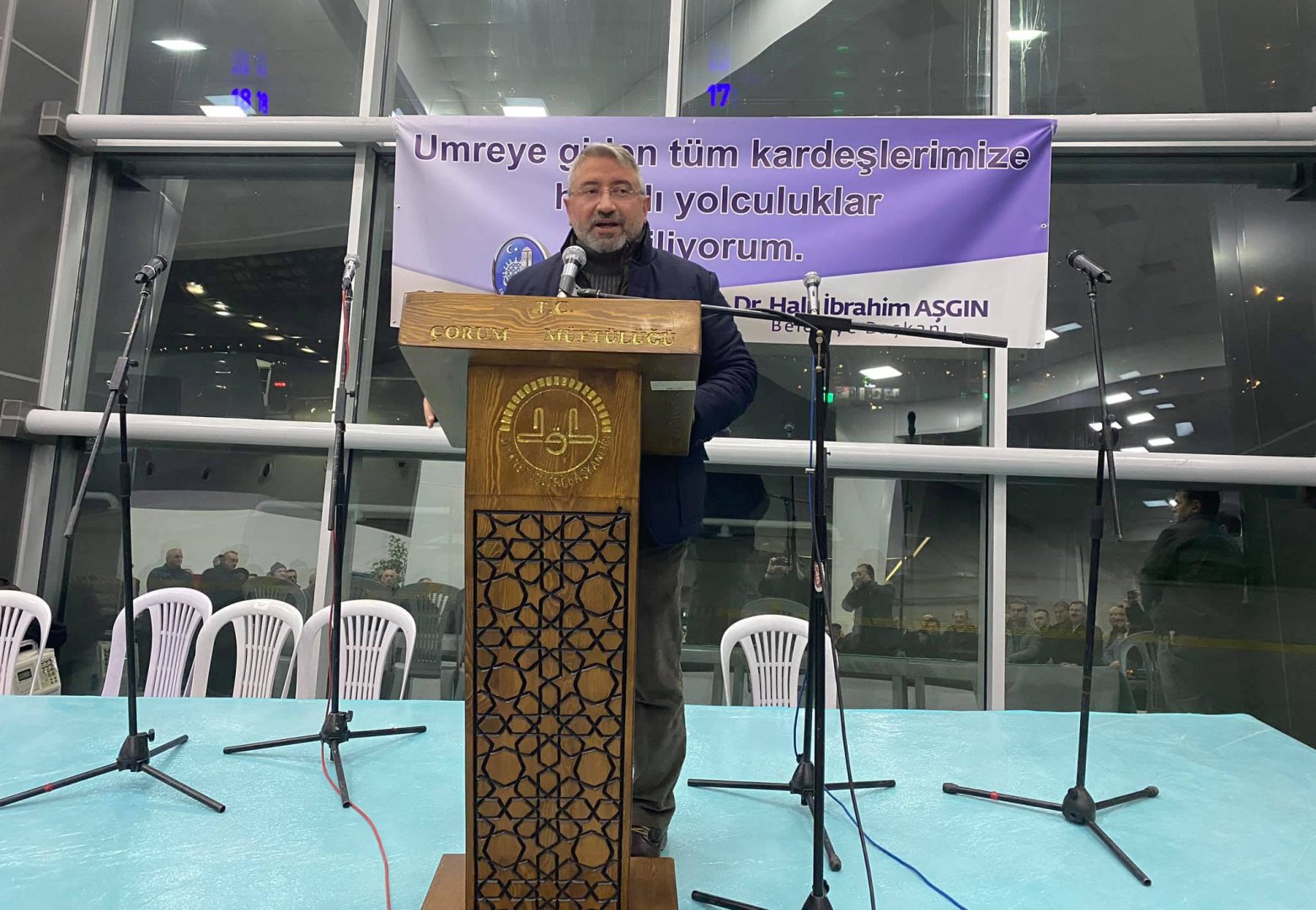 Çorum Belediyesi Otobüs Terminalinde düzenlenen programda umreye giden vatandaşları yolcu eden Aşgın, umrecilere sağlıkla gidip gelmelerini diledi. Aşgın, “Hz. Ebu Bekir’in sıdkıyla, Hz. Ömer’in adaletiyle, Hz. Osman’ın edebiyle, Hz. Ali’nin ilmiyle geri dönün inşallah. Allah, umrelerinizi mebrur eylesin. Gitmeyen kardeşlerimize de nasip olsun.” dedi.