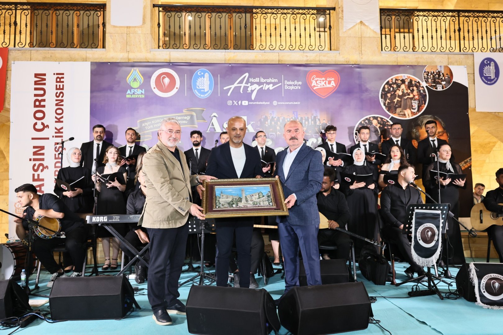 Konserin sonunda Çorum Belediye Başkanı Dr. Halil İbrahim Aşgın ve Çorum Valisi Ali Çalgançiçek ve hediye takdimleri gerçekleştirdi. Afşin Belediye Başkanı Koray Kıraç da Çorum Belediye Başkanı Dr. Halil İbrahim Aşgın’aportresinin yer aldığı özel bir tablo hediye etti. Vali Çalgan ve Başkan Aşgın ise Kıraç’a Çorum temalı bir tablo takdim etti.