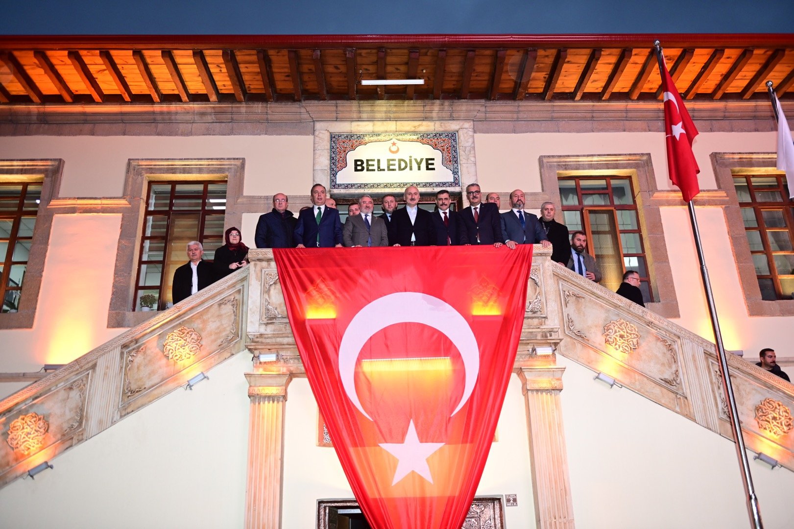 Konuşmaların sonunda Belediye Başkanı Dr. Halil İbrahim Aşgın, Ulaştırma ve Altyapı Bakanı Adil Karaismailoğlu’na hediye takdim etti.