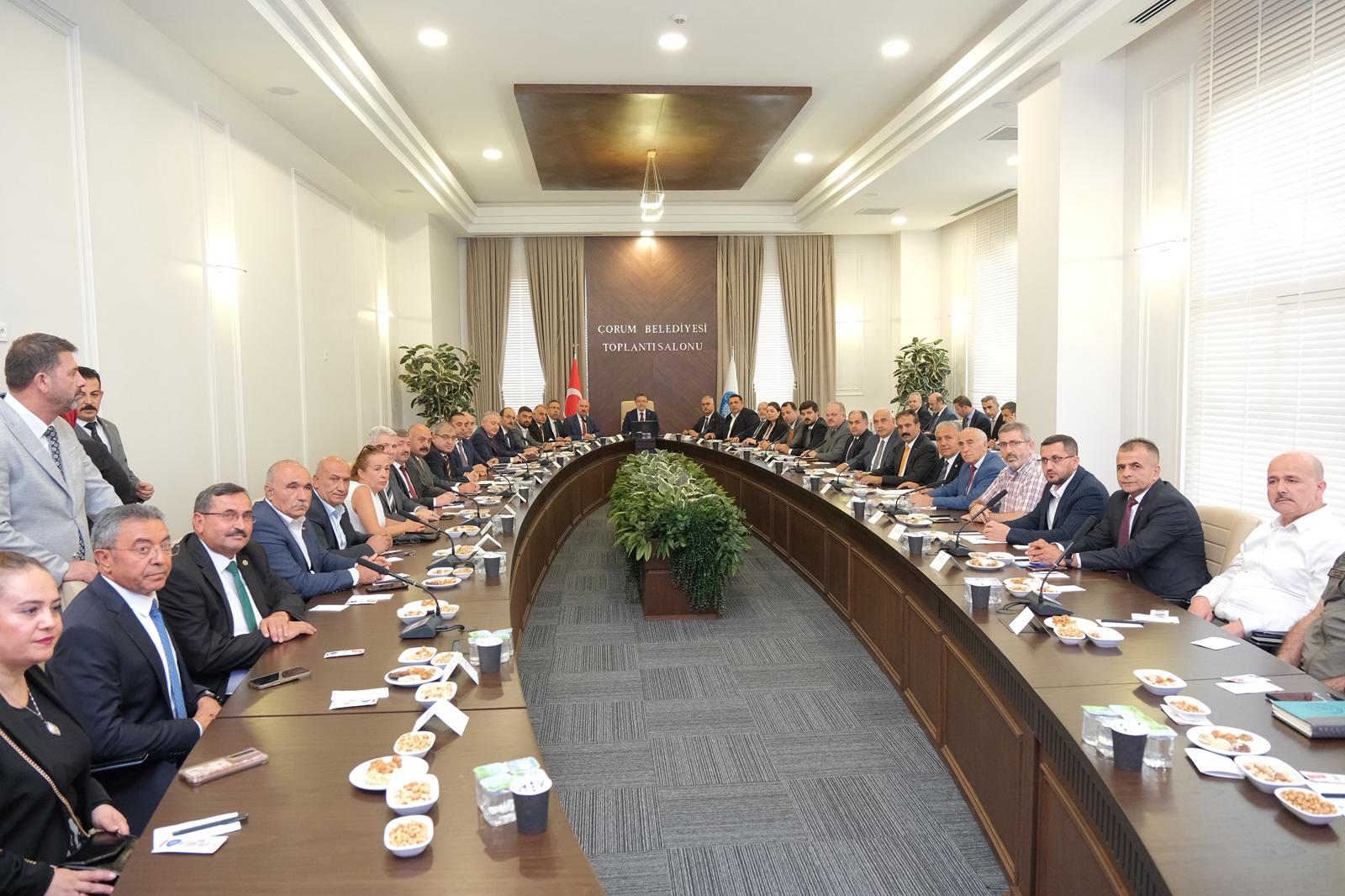 Tarım ve Orman Bakanı İbrahim Yumaklı, Çorum Belediyesi’nde önce Belediye Başkanı Dr. Halil İbrahim Aşgın ile ardından İlçe Belediye Başkanları ile bir araya geldi.  Ziyarette Başkan Aşgın, Çorum Belediyesi’nin yürüttüğü yatırımlar hakkında kapsamlı bir sunum yaparak Bakan Yumaklı’ya bilgi verdi.  İçmesuyu temini, baraj projeleri, dere ıslahları ve arıtma tesisleri gibi birçok alanda tamamlanan ve devam eden çalışmaları aktaran Başkan Aşgın, özellikle Koçhisar İsale Hattı, İçmesuyu Arıtma Tesisi, İbrahim Çayırı ve Sıklık Deresi ıslahları ile barajlardaki su alma yapılarında verilen destekler için teşekkür etti.