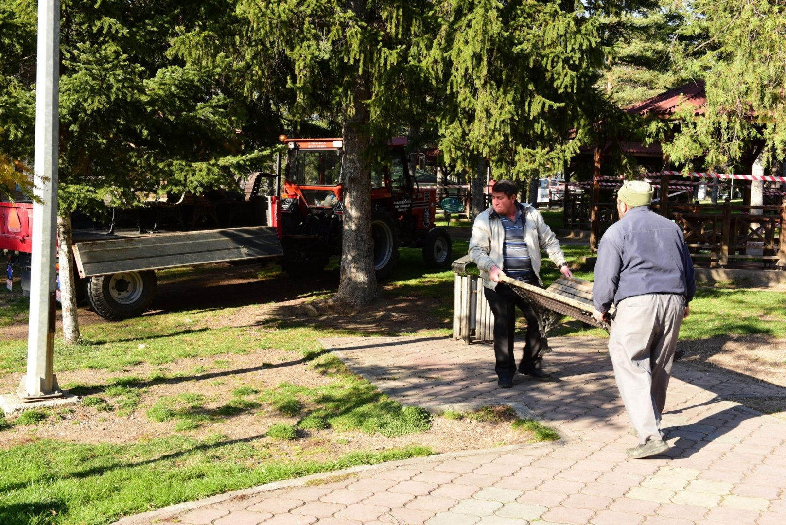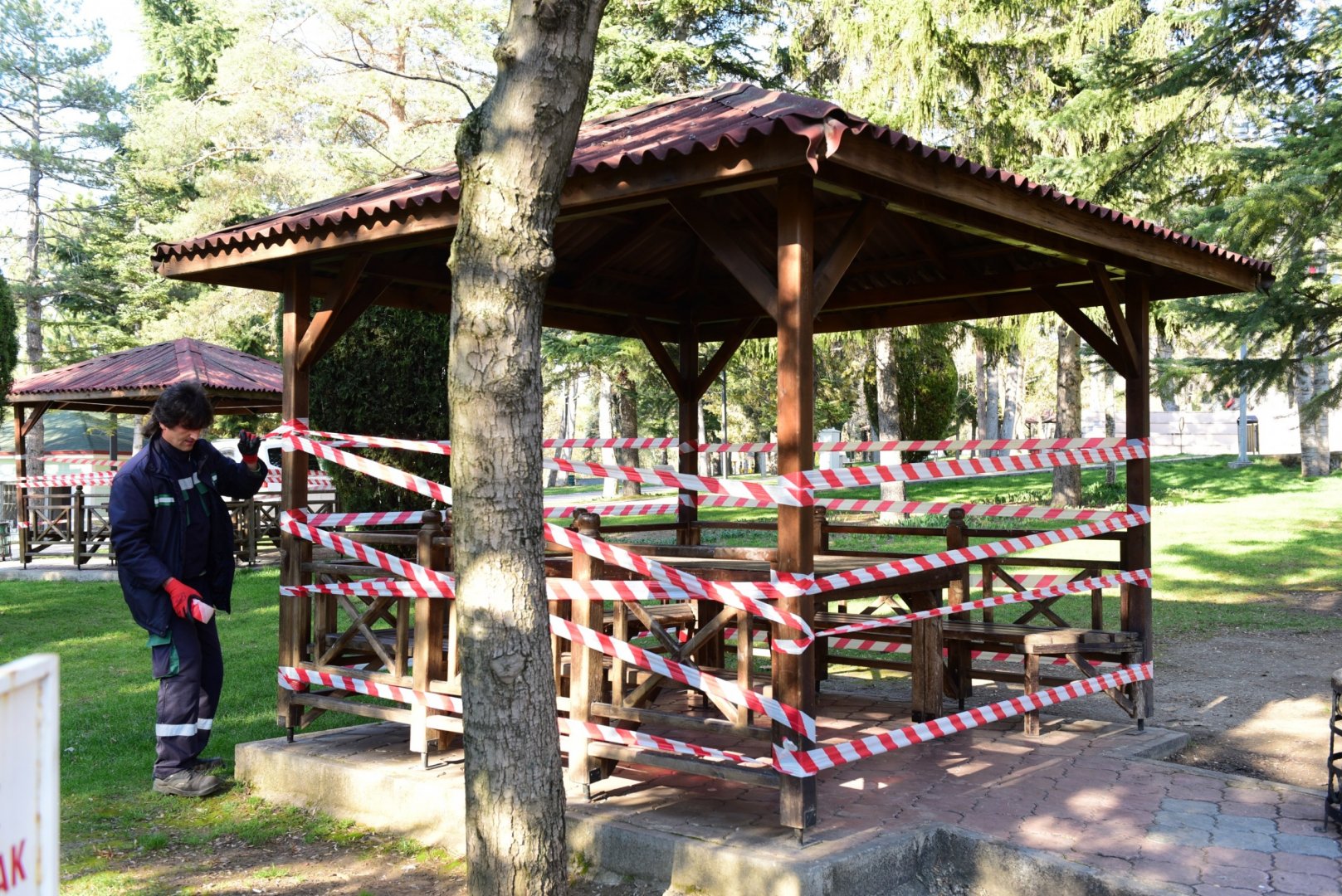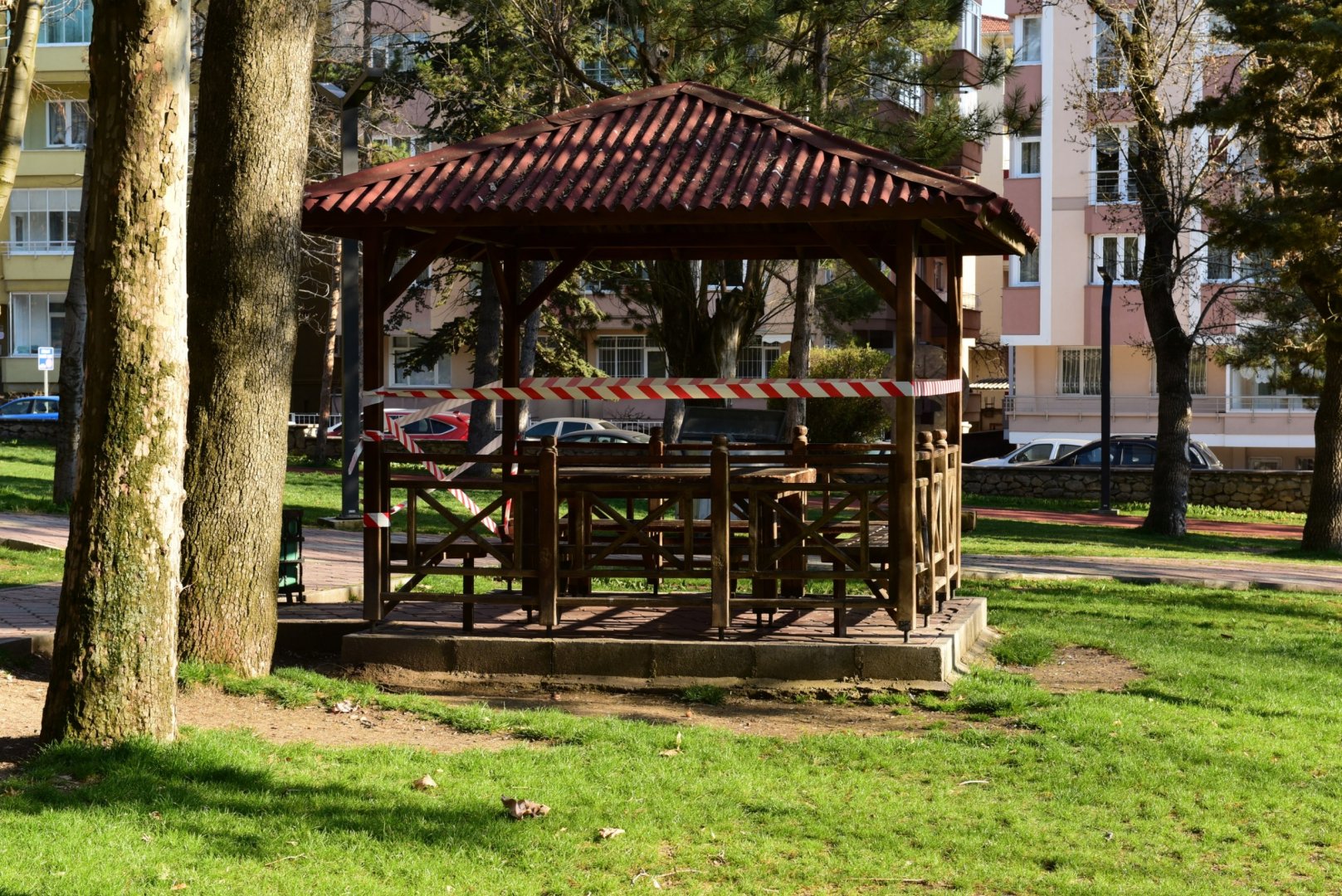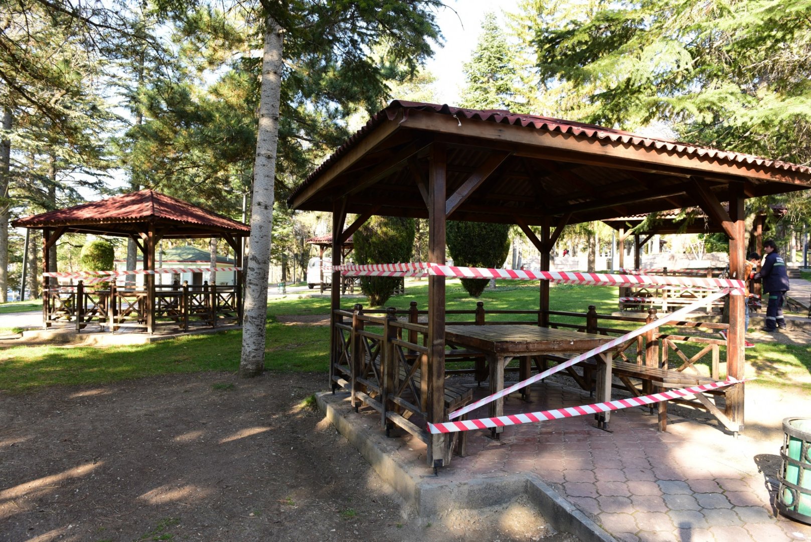 Belediyemiz, koronavirüs tedbirleri kapsamında parklardaki bankları kaldırdı. Yine parklardaki kameriyelerin etrafını da şeritlerle çevirerek virüs tehdidi geçene kadar vatandaşların kullanımına kapattı.